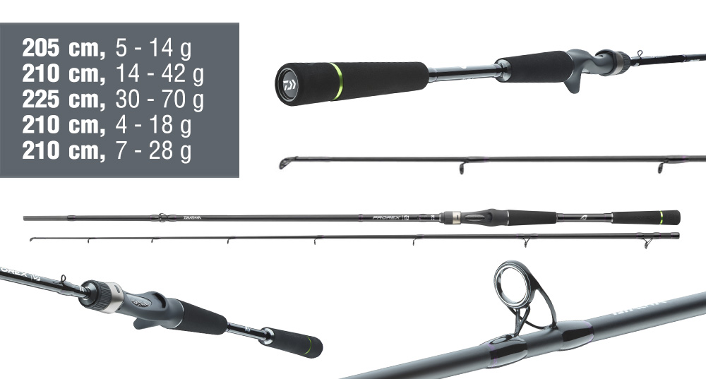 Řada baitcastových prutů Prorex S neponechává nic náhodě a nabízí ten správný model pro téměř všechny běžné dravce a styly rybolovu. Dva parabolické modely Crank s vrhací zátěží 4-18g a 7-28g jsou vhodné zejména pro nástrahy vytvářející silný odpor ve vodě, jako jsou hlubinné woblery a chatterbaity. Řada Prorex S je vybavena vysoce kvalitními očky Seaguide LS a nabízí vynikající poměr ceny a kvality!