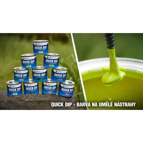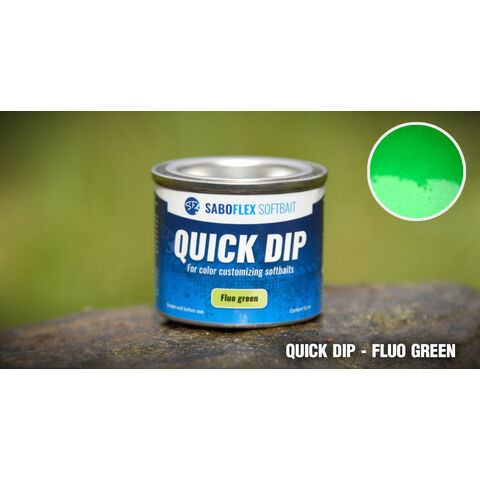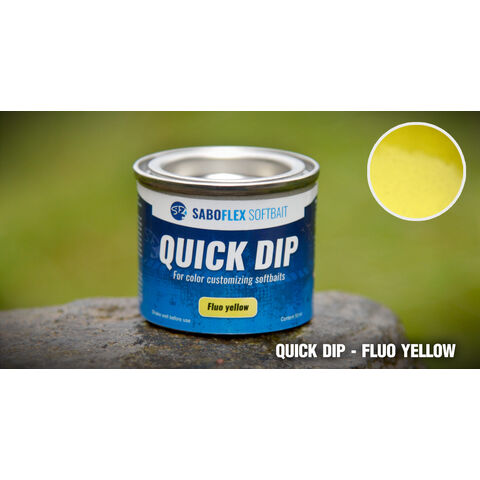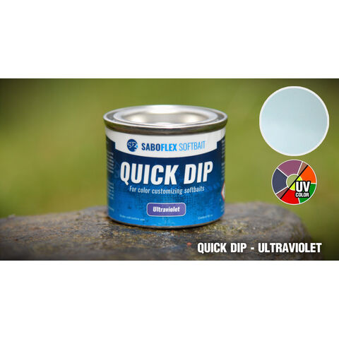 SaBoFlex Sofbait Quick Dip je rychleschnoucí barva navržená tak, aby vám umožnila barevně upravovat jednotlivé nástrahy jednoduchým namočením do barvy. Quick Dip lze nanášet i štětcem nebo vatovým tampónem. Pomocí jednoduchých barevných modifikací lze dravce někdy přimět k záběru. Může to být např. barevný ocásek, tečka, proužek na těle apod.