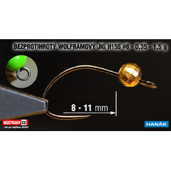 Wolframový extrémně ostrý a pevný jig bez protihrotu se zvětšeným očkem. Pro nástrahy 1,5 - 2 cm.