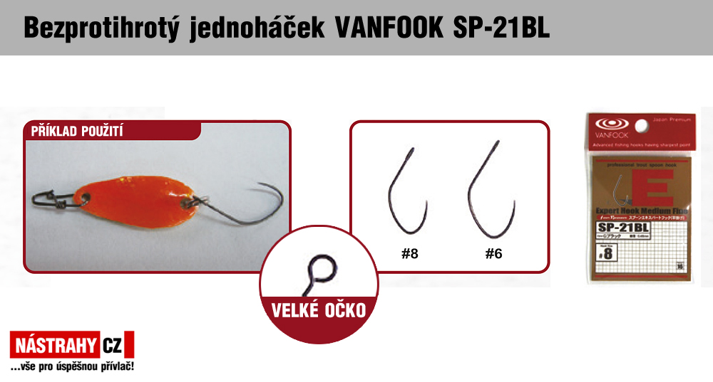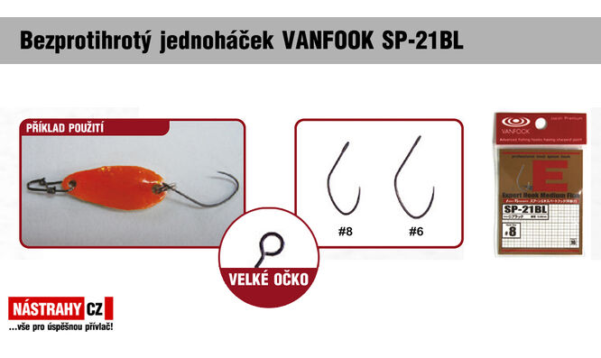 Extrémně ostrý háček s velkým očkem určený na plandavky nebo rotačky. Model SP-21 je vyroben z tenkého drátu díky čemuž se velmi snadno zapichuje i při jemném kontaktu s rybou. Tenká tloušťka drátu předurčuje model SP-21 k použití zkušenými závodníky a lidmi, kteří si chtějí vyzkoušet skutečnou ultra lehkou přívlač.