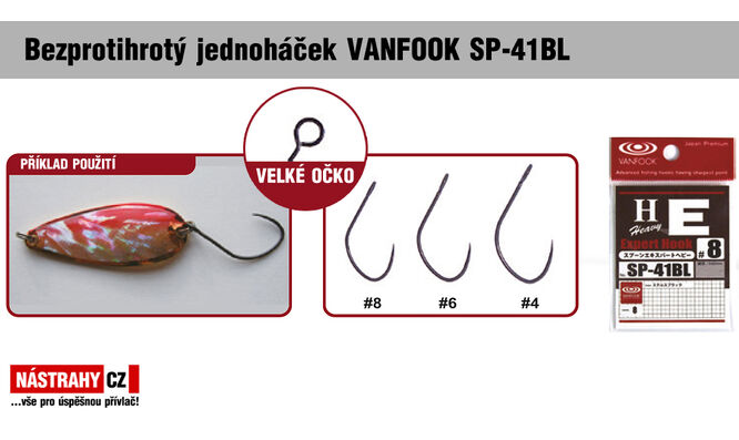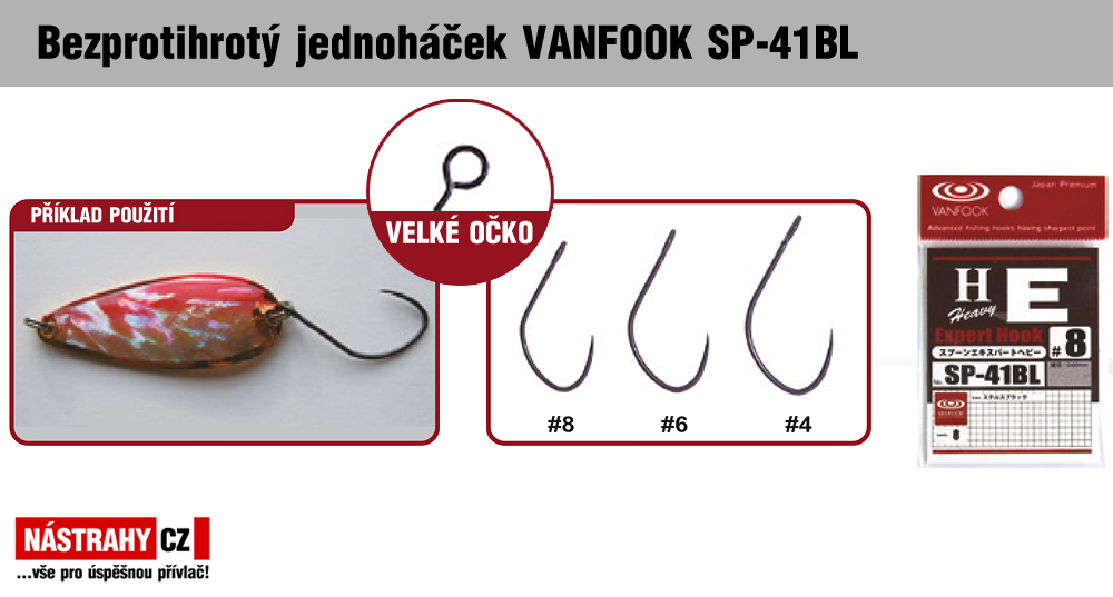 Extrémně ostrý háček s velkým očkem určený na plandavky nebo rotačky. Model SP-41 je vyroben z pevnějšího drátu, je extrémně ostrý a určený na souboje s téměř každým pstruhem, jehož v našich vodách najdete. Tento model je velmi oblíbené při lovu pstruha během závodů na stojaté vodě, kde potřebujete rybu rychle zdolat, k čemuž je zapotřebí pevnější háček. Jedná se o nejprodávanější model ze série Vanfook SP.