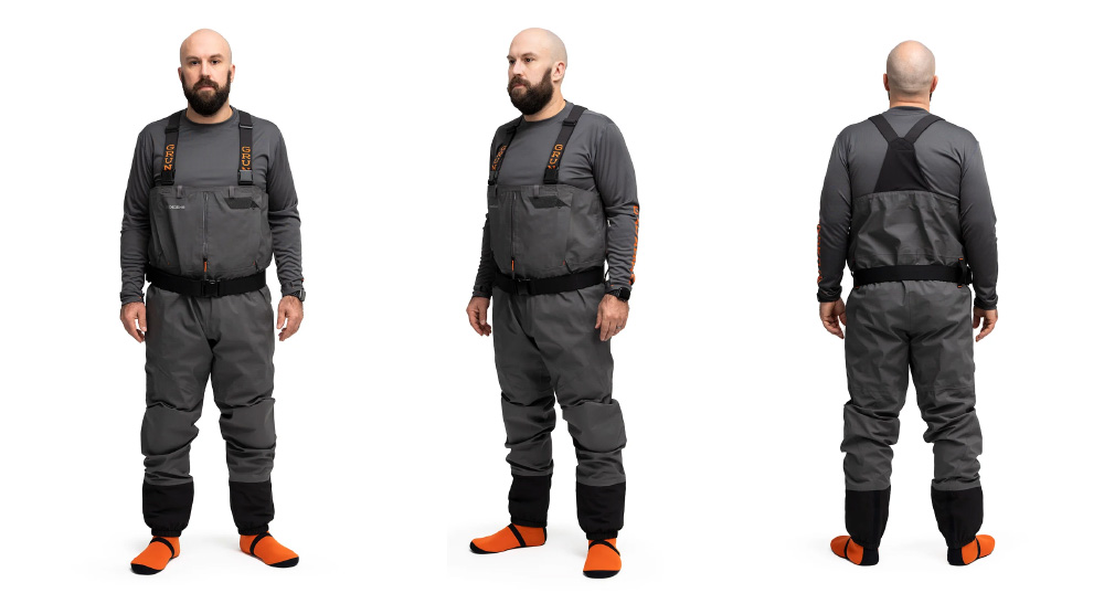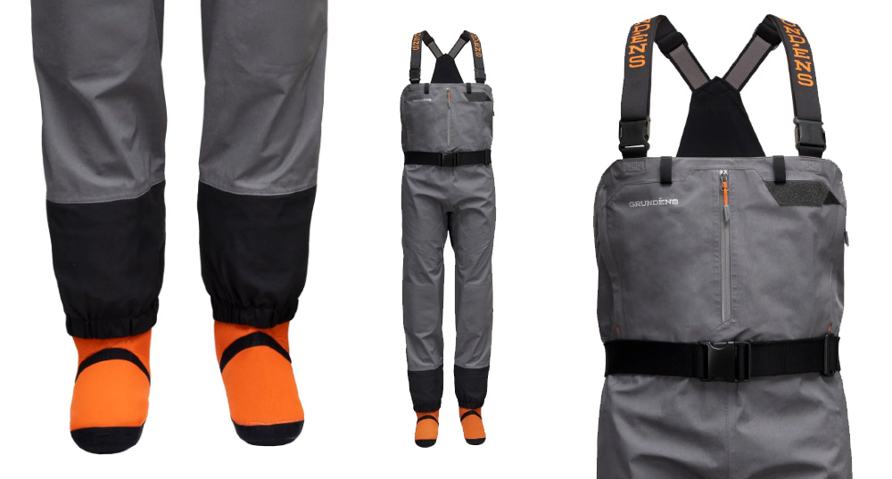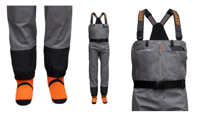 - Speciální tvar kalhot Grundéns pro snadný pohyb při brodění, ve vodě i mimo ni.