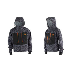 Vysoce kvalitní prodyšná brodicí bunda v exkluzivní šedé kamufláži pro baltský lov mořských okounů a pro sladkovodní lov přívlačí.