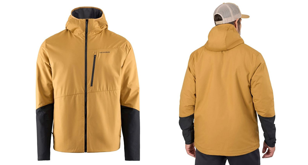 Vnější materiál je vyroben z recyklovaného strečového polyesteru, který je upraven pro odpuzování vody, chrání proti větru a má zvýšenou odolnost proti trhání, čímž poskytuje maximální ochranu proti živlům. Rychleschnoucí manžety s dvojitým pletením snižují nasákavost vody a zpevňují oblast předloktí.