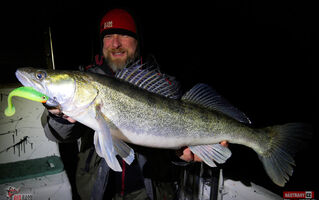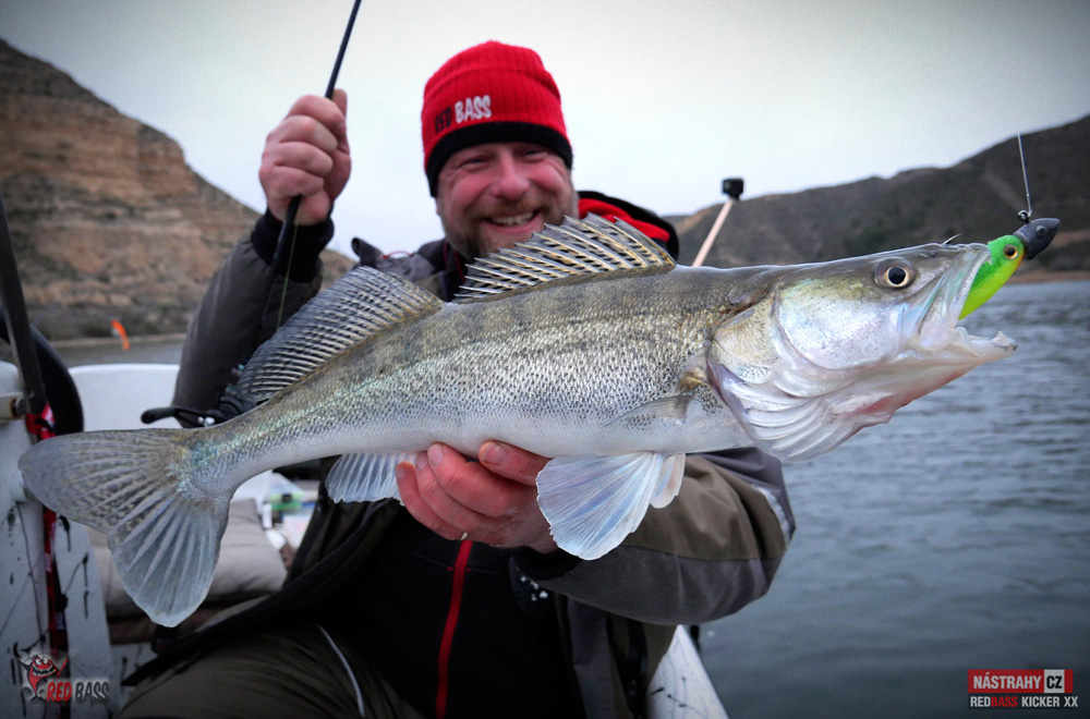 Se vstáváním to extra nepřeháníme. Vydatná snídaně a až za světla vylézáme z pokoje. Slibovaný vítr nám hned počechrá kadeře. Bude to hustý! Pod hrází, kam míříme, je maličko závětří a věříme, že se brzy i trochu oteplí. Ledové klima brzy „ohřeje naši duši“ první ryby. Honza krátce po zahájení lovu otevírá den pěkným candátem, já přidávám jednoho na vertikál a Ondra kontruje na véčko pěkným kopancem a rybou, která se brání o něco více. Po krátkém boji se objevuje pěkný candát 74 cm. Hlásí, že je spokojen a ihned dostává další pěkný kopanec. Opět lepší souboj, ale kopance a je to… menší sumec! A pak se v tom začneme plácat. Po slibném ránu ztrácí Honza jednoho candáta ve stromech a další záběry už nepřichází. Jen nekonečná série sledovaček nástrah. Zkoušíme změnu taktiky na mělčině, kde nám to vloni šlapalo, ale marně. Ani klep. Voda je tak čistá, že vidíme až na dno a není vidět ani „bakterie“. Kombinace chladné vody a její čistoty je nejspíše příčinou, že ryby na mělčinu (cca 3 m) nevyjely. Za dopoledne už se žádná ryba nepovede. Valíme tedy na pozdní oběd s tím, že v brzkém odpoledni se po spánku na místo vrátíme. Z krátkého spánku se stává pořádný tříhodinový šlofík a na vodu jedeme až krátce před šeřením. Zdá se ale, že ryby berou až podvečer, protože zažíváme docela rodeo. Ondra dává dalšího sumce cca 110 cm a kosíme jedno céčko za druhým. Berou jak z odhozu tak hlavně na vertikál. Tam se zdá být nejlepší volbou Kicker 12,5 a 15,5 cm ve výrazné barvě a nový smáček BigSnake. Za černočerné tmy dostávám na Kickera Fluo/green RH záběr ve sloupci. Hned tuším, že jde o lepší rybu a alarmuju kluky s podběrákem. Krátké máchnutí sítí a v lodi se kochám krásným céčkem 79 cm a zvedám si tak „Ebro osobák“. Jsem nadšen! Lov končíme se zavíračkou s 15 candáty a dvěma sumci. Ondra je se sedmi candáty a dvěma sumci králem dne. Jsme zmrzlí jak sobolí lejna, ale nadšení a těšíme se, že další den nebude tak foukat a ryby začnou brát ještě lépe. Rychlá večeře a plán na další den. Shodujeme se, že se asi vyplatí vstát ještě dříve a být na místě ještě za tmy. Budík tedy bude v 5:30. Jdeme spát. K usínání si pouštím film. Jsem ale tak vyfoukaný a vymrzlý, že nezvládám ani úvodní titulky a už jsem v limbu...