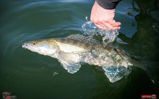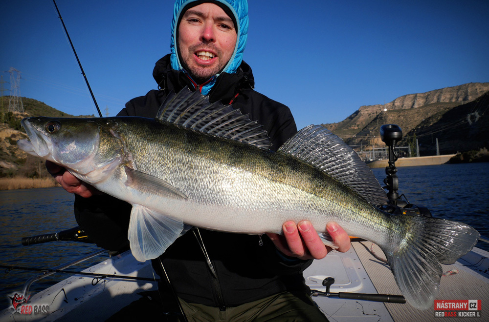 5:30 zvoní budík a my? Vstali jsme! Třikrát sláva! To už ale nedá říci o včasném odjezdu. Uspokojení z překonání sama sebe nás zpomaluje a snídáme ve stylu králů. Alespoň co se rychlosti týká ???? Na vodě jsme tedy zase až za světla. První spuštění nástrah, první lákání. A hned je tu rána do Kickera a Ondrovo céčko. Sakra, měli jsme vstát dřív! Nedá se ale nic dělat a snažíme se „pracovat“ s tím co máme. Když po chvilce míjíme pod vodou stojící strom, dostává Ondra (ano, zase Ondra!) na pěti metrech mocný kopanec u dna. Po záseku ryba urputným tahem a kopanci do šňůry sděluje, že to nebude tak easy. Podle všeho to bude lepší sumec. Máme ale problém. Sumec se s Ondrou pere na mělčí vodě a směrem na hloubku jsou dva stromy, mezi kterými je asi 5-10 metrů volného prostoru. „Drž ho pod námi, já zkusím projet na hloubku mezi stromy“, drmolím s obavami na Ondru. „A jak asi, vždyť si dělá, co chce!?“, odvětí krátce Ondra. „Co tam máš za prut, šňůru a návazec?“, ptám se. „Ten Pelagic 30 – 80 g, na který si vloni vytáhl toho stokilového, dvacítku šňůru a pětapadesátku fluoš!“. „Tak co je cajk, to dáme!“. S trochou uklidnění, že vybavení dává slušnou šanci na zdolání, směřuji loď mezi stromy na hloubku. Sumec je poslušný a snahu zajet do větví neprojevuje. Na korytě je dvanáct metrů a čisto. Tady už je to jen otázkou času. Po cca 10 minutách přetahované ho v hloubce vidíme. Zpočátku jsem maličko optimističtější a hlásím, že bude atakovat dva metry. Následuje několik plácaček po hlavě a už je v lodi. Má necelých 170 cm. Ondra je nadšen. Vybavení koncipoval tak, aby měl na zdolání sumce šanci. A je to jeho osobák. Jen je vyděšen z focení. Představa, že je celý od slizu, ho děsí. Řeším to tak, že mu na kolena dám naši fotopodložku a sumce na něj položím. Pár rychlých fotek a fešáka pouštíme. Ondra si dává pauzu. Mě ryby jen vyjíždí za nástrahou. Jakmile ke dnu pustí Kickera Ondra, hned má další céčko. Maličko nervózním, když přidá i Honza ???? Nakonec se dočkám i já. Po změně barvy Kickera z oranžové na přírodní mi ve sloupci klepne pěkná ryba, která si zaslouží krátké přeměření. Má 72 cm. Dopoledne a přes oběd už je to tradičně extrémně slabé. Proto raději mizíme na oběd. Podvečer se opakuje stejný scénář. Ryby začnou kousat až v černočerné tmě, kdy jich během hodiny chytíme více než za celý den a já dokonce druhou rybu dne přes sedmdesát, konkrétně 74 cm. Den uzavíráme se skóre třináct candátů a jeden sumec. Plán na zítřek je jasný. Musíme vstát a nesnídat hodinu ???? Snad to klapne!
