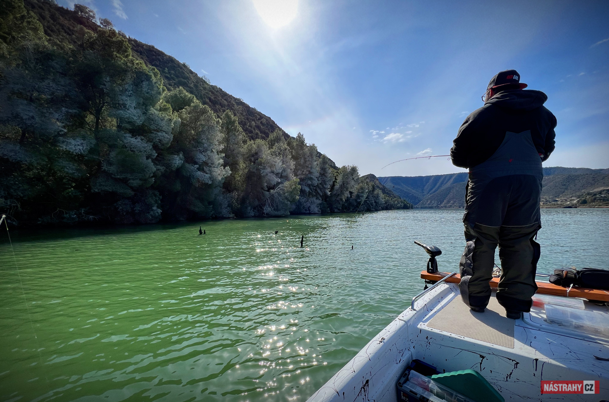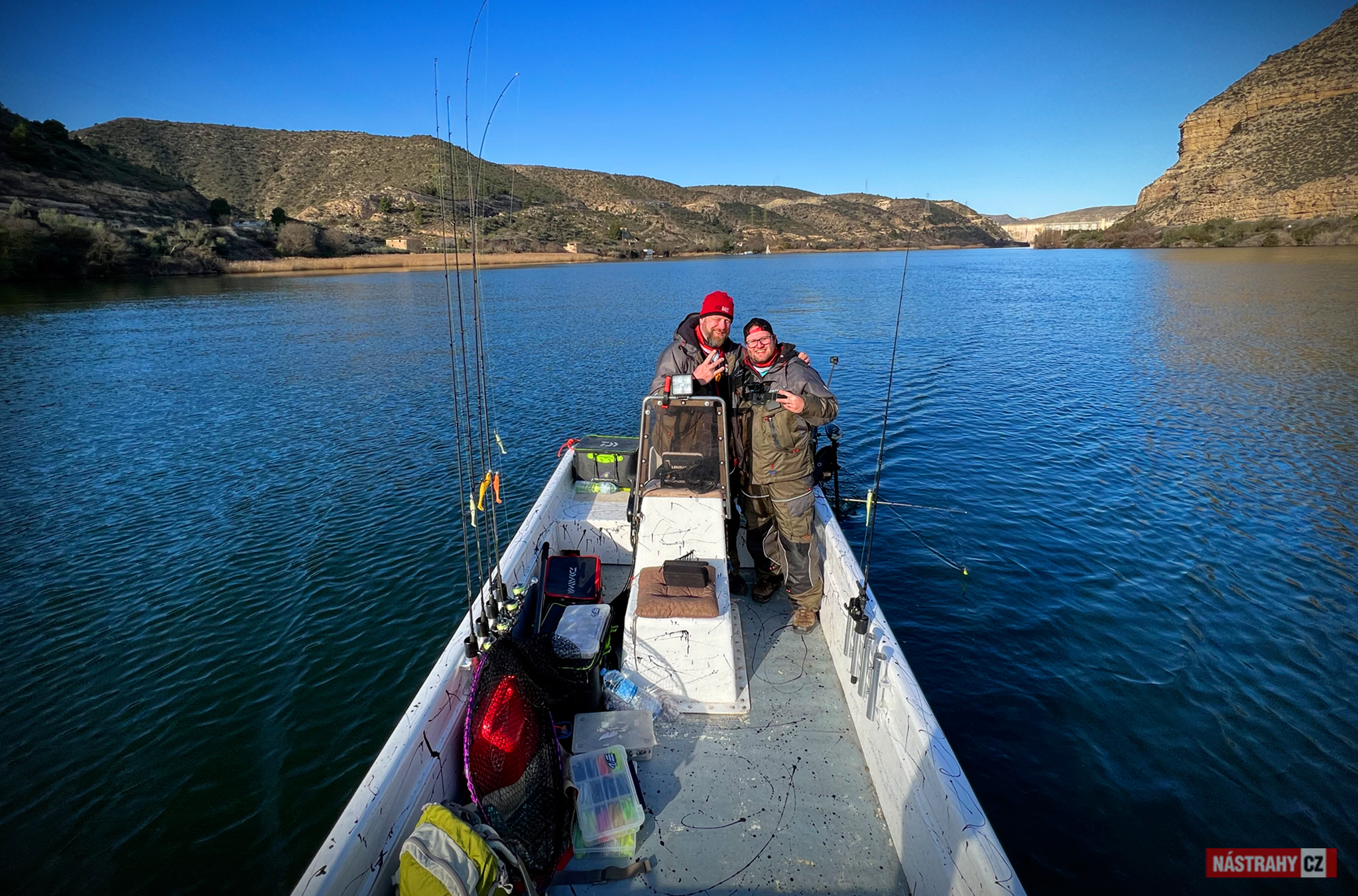 A je tu poslední den. Ráno je opět slabší, Ondra dává dokonce zero. My s Honzou tři candoše. Dopoledne je také jalové a tak se věnujeme natáčení pod vodou. Nacházíme krásné sumce ve stromech a candáty. Jelikož se zcela uklidnil vítr, napadne mne projet mělčinu. Třeba nějaké ryby zahlédneme a natočíme. Jsou zde tři metry vody a je dokonale vidět na dno. Po chvilce zažíváme šok. Vidíme totiž ve větvích sumce. Má vytrčené vousy! Tipuju, že by mohl zabrat. Jak se však mýlím. Pouze odpočívá a pokus vydráždit ho končí jeho úprkem. Zkoušíme najít dalšího. Jakmile je na dně nějaká překážka, často v ní nějaký leží, někde dokonce dva. Následující hodinu nalézáme ještě asi deset sumců, kapry a jednoho candáta. Pak se opět rozfouká a ani polarizačky odlesky dostatečně neodstraní. Rozmar počasí tedy fascinující podívanou ukončuje. Jedeme se vyspat. Podvečer se ryby už standardně rozběhnou a během hodiny jich po setmění dáme asi deset. Před zavíračkou balíme. Zítra nás čeká dlouhá cesta a je potřeba se vyspat. Před usnutím rekapitulujeme. Letos to bylo nejspíš díky ochlazení horší, nicméně jsme dali cca deset ryb 70+, celkem asi sto céček, pěkného sumce, jednoho mega jsem urval. Navíc máme natočené neskutečné podvodní záběry ryb, cca osm natočených ataků nástrahy candátem… Co víc si přát? Snad jen zase vyrazit na Ebro!