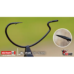 Offsetový háček s vysokou pevností a speciálním hrotem. Široká škála velikostí na gumy od cca 5 - 20 cm.