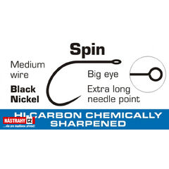 Extrémně ostrý háček s protihroty na raménku pro ideální použití s čeburaškou. Standardní hrot.