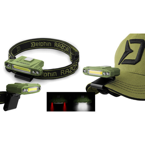 Delphin RAZOR USB je praktická čelová LED lampa zelené barvy se zabudovanou Li-Ion baterií, jejíž kapacita je 500mAh. Kromě klasického nošení ji lze díky její nízké hmotnosti nosit i na kšiltu pomocí zabudovaného úchytu. Vybavená je pohybovým senzorem s jednoduchým ovládáním a paměťovou funkcí, která si pamatuje zvolenou intenzitu a barvu světla. Intenzitu svícení můžete ovládat pomocí tří funkcí. Po prvním stisknutí je k dispozici 30% výkonu s výdrží baterie 8h, po druhém stisku je k dispozici 100% výkonu s výdrží baterie 3h a po třetím stisku je k dispozici 100% výkonu světla červené barvy s výdrží baterie 3h. Svítivost je při plném výkonu 85lm. Výhodou je i jednoduché nabíjení prostřednictvím USB nebo powerbank s dobou trvání do dvou hodin.