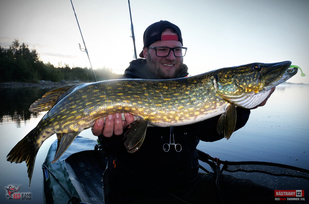 Den dvanáctý. Sny o desítkách velkých okounů mne provázejí celou noc. Jsou tak intenzivní, že slyším brzdu navijáku a šplouchání. Tak intenzivně, že mám pocit, že je neobvykle hlasitá. Má ale hrozně divný zvuk!? Co to? Co to je?! Otvírám oči. Není to brzda navijáku. Je to zvuk budík, který se mě už notně dlouhou dobu snaží probrat. Letmo kouknu na hodinky. Sakra. Zaspal jsem! Je půl šesté. Dopr! Spěšně vylezu ze stanu. Už je světlo. Achjo, nejlepší čas jsem prospal. Ale to nevadí, když tu berou, berou až do pozdního rána. Spíše dopoledne. Šok. Pohled na kajaky mne zarazí. Zdálo se mi, že je chladno, ale že mrzlo, mě nenapadlo. Kajaky jsou celé pokryté jinovatkou. Budím kluky. Honza tradičně nereaguje, Ondra se ve stanu zamele a něco zamumlá. Uvidíme, zda-li vstane. Spěšně si uvařím kávu, hodím kajak na vodu a jdu na to. Z vody vnímám, že Ondra také. Když dorazím na top flek, nahazuji a svírám prut v ruce. Hned by totiž měla přijít rána a měl by mne potěšit první velký okoun. Nic. Další hod. Nic. Desátý, dvacátý a nic. Touhle dobou bych jich měl mít už alespoň deset. Houknu na Ondru. Ten také nic kloudného ještě nevytáhl. Někde je zrada. Sem tam se podaří menší, ale cílové ryby jako by tu vymřely. Po několika hodinách házení máme jen pár okounů, jejichž velikost je okolo 20 cm, sem tam nějaký je o fous větší. A jednu pěknou štiku okolo 80 cm, kterou mezi okouny trefil Ondra. Cakla mu okounovou nástrahu a tak přebil a okamžitě jí vytáhl s odpovídajícím vybavením :-) Asi tedy budeme muset pozornost obrátit jinam. Čapnu štikáč a nahodím velkého swimmera do míst, kde bývají okouni. Klesne na dno a přichází jemný klepanec. Zaseknu, ale ryba to není. Pomalu k sobě přitahuji velkou těžkou větev. Už bych jí měl pomalu vidět. Najednou se z větve stává raketa, která ovšem neletí do vesmíru, ale směrem ke dnu. Bzzzzzzzzzzzzzz. "Mám tam mega štiku!", křičím na Ondru. Než však odvětí, ryba se po asi dvacetimetrovém únikovém manévru osvobozuje. To snad ne!!! Bohužel je to tak. Klepou se mi kolena. Chvíli povídáme a já rozdýchávám další adrenalinový zážitek. A smutním. Takový pech! Začneme znovu házet. Asi dvacátý hod dostávám ránu a tahám další těžkou rybu. Je ovšem o poznání povolnější. Po krátkém souboji ji vidím. Nádherná štika, které do metru moc nechybí. Znovu se mi klepou kolena. Mám totiž malý podběrák. Ondra rychle přinese svůj velký, do kterého vklouzne jako nic. Paráda! Rychle jí změříme (97 cm), vyfotíme a dáváme jí možnost dále terorizovat své okolí. Chvíli diskutujeme na téma, zda-li to nemohla být ta předchozí. Možná ano, ale spíše ne. Nevím. Těžko říci, s jistotou víme jen to, že se to nikdy nedozvíme. Úlovek nás motivuje ke štikaření. Pár ryb se podaří, jedna je i lepší - okolo 80 cm. Ondra je v tu chvíli docela daleko, tak ho ani nevolám a fotím jen její výskoky. Po zhruba hodině snažení vidím, že Ondra něco tahá. Je ode mě asi 300-400 metrů, tak nevidím detaily. Doufám jen, trochu sobecky, že nebude "na fotku". "Pojéééď mi udělat fotku", křičí. Tak je asi dobrá :-). Krátký sprint po jezeře a už fotíme další mramorovanou krásku. Tato má 93 cm. Tak nakonec luxusní ráno! Po krátkém obědě se rozhodujeme k průzkumu oblastí, kde jsme ještě nikdy nebyli. Výlet je to pěkný, mě se podaří asi 7 štik do 60 cm, kluci objeví velké hejno okounů. Ale nejsou nijak velcí. Den je jak malovaný a užíváme si poslední celý den na rybách v severské přírodě. Večer si sedneme k ohýnku, rekapitulujeme výpravu a odpočíváme. Z rozjímání nás vytrhne podivný úkaz na obloze. Chvíli nevěřícně pozorujeme zvláštní nazelenalý mrak a pak nám dojde, že už po třetí vidíme polární záři! A to i přes to, že jsme již několik set kilometrů pod polárním kruhem. Neuvěřitelné. Trocha fyziky z wikipedie: Polární záře je souhrnný název pro světelné úkazy nastávající ve vysoké atmosféře Země ve výškách od 80 do 100 km. Běžně se vyskytují v polárních oblastech, zatímco ve středních zeměpisných šířkách a zejména v tropech jen výjimečně. Jižní a severní záře jsou mírně odlišné. Polární záře vzniká tak, že na Slunci vznikají vlivem nerovností v magnetickém poli sluneční skvrny. U těchto skvrn vznikne jedna masivní protuberance (erupce). Mrak částic slunečního větru tvořený protony, elektrony a alfa částicemi (plazmoid) letí vesmírem (rychlostí řádově 0,1 % rychlosti světla), a pokud se na své cestě setká s magnetickým polem Země, tak ho ono pole většinu odrazí dál do vesmíru, ale část ho zachytí a stáčí po spirálách směrem k magnetickým pólům Země. Tam sluneční vítr interaguje s atmosférou a vzniká polární záře. Konec fyzikální vsuvky :-) Záři si vyfotíme a jdeme do hajan. Zítra nás totiž čeká poslední ranní lov, pak balení a odjezd domů. Usínám s nadějí, že se okouni ukáží a výpravu zakončíme nějakými pěknými úlovky. Uvidíme...