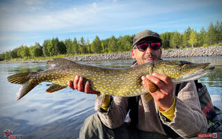 Den třináctý. A taky poslední. V noci na mě přichází zodpovědnost a budík přenastavím na sedmou ranní. Přesně od toho okamžiku nám za čtyřiadvacet hodin pojede trajekt a cesta bude předlouhá. A proto je potřeba se trochu vyspat. Jakmile budík zazvoní, vstanu a kluci překvapivě také. Máme před sebou posledních pár hodin lovu a každý si to chce ještě užít. Okouni stejně jako včera nespolupracují. Já jsem namlsán štikami a tak se do nich po hodině okounovačky pustím. Postupně prochytávám vybranou část jezera a kochám se krajinou, která se postupně vynořuje z mlhy. Z kochání mne sem tam vytrhne záběr od štiky. Nejsou sice veliké, osmdesát asi žádná nepřekoná, ale ty barvy, souboje, výskoky... To je prostě rozloučení jaksepatří! Kluci nalézají hejno okounů a baví se jimi, Ondra kdesi v dáli nahání štiky. Pomalu se blíží desátá hodina, kdy máme v plánu začít balit a vyrazit směrem na jih. K domovu. Poctivě ještě hážu velkého swimmera a dostávám pěknou prdu, po níž následuje svižný odjezd přes brzdu. Vypadá to na lepší rybu, což mi přijde divné. Dnes by měla přijít jen malá!? Mám totiž velký podběrák a mě berou velké ryby jen, když nejsem připraven!? Ryba se ale malá nezdá. Jízdy přes brzdu, mohutné vlnění. Na chvíli poleví, čehož využiju a zvednu jí k hladině. "Ondroooo, budeme fotiiiiit!" hejknu na Ondru. Štika je zmatená a toho využiju a velký podběrák jí pojme jako nic. Rychlé změření ukáže 97 cm. Hustý! Mám třetí štiku okolo metru a všechny byly stejně dlouhé. Zajímavá shoda! Před dvěma lety jsem měl 2 x 103 cm a nyní 3 x 97 cm. A Ondra měl tuším 3x 93 cm. Fakt zajímavé :-) Pár fotek a už zase brázdí domovské jezero. A já jsem v sedmém nebi. To bylo rozloučení 1A. Pomalu se vracím do tábořiště. Tady je Honza a něco tahá. Taky celkem slušnou štiku. Rychle jí blejskneme a jdeme na tu nejméně příjemnou část výpravy. Vše pečlivě roztřídit, uspořádat a odjet domů. Cesta k trajektu bude předlouhá a náročná. Další den jsme před půl sedmou na pobřeží. Paní v okénku ukazuji jízdenku. Vrtí ale hlavou. Prý máme zaplacenou cestu z Německa do Švédska. A my to potřebujeme obráceně! "No tyvole, já sem kokot. Já to koupil blbě!!!", komentuju klukům svůj fail. Naštěstí lze za příplatek směr jízdy změnit a na trajektu je volno. Tak to byla klika :-) Zbytek cesty je v pohodě, až na mírné komplikace v ČR. Havárka několika aut nám zajistí hodinové čekání v koloně na dálnici. Domů ale dorazíme v pořádku a jak se říká: "konec dobrý, všechno dobrý!" Nezbývá než poděkovat Svatému Petrovi za jeho štědrost a laponské krajině za přívětivost. Určitě se brzy zase shledáme! Petrův zdar!
