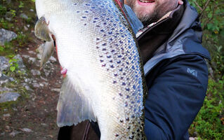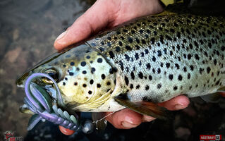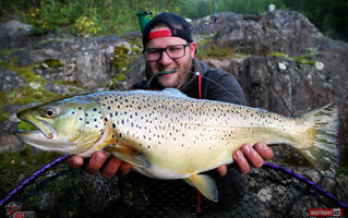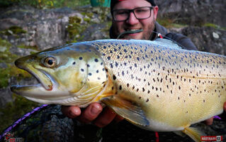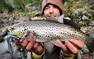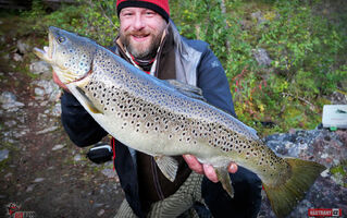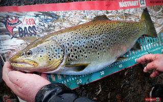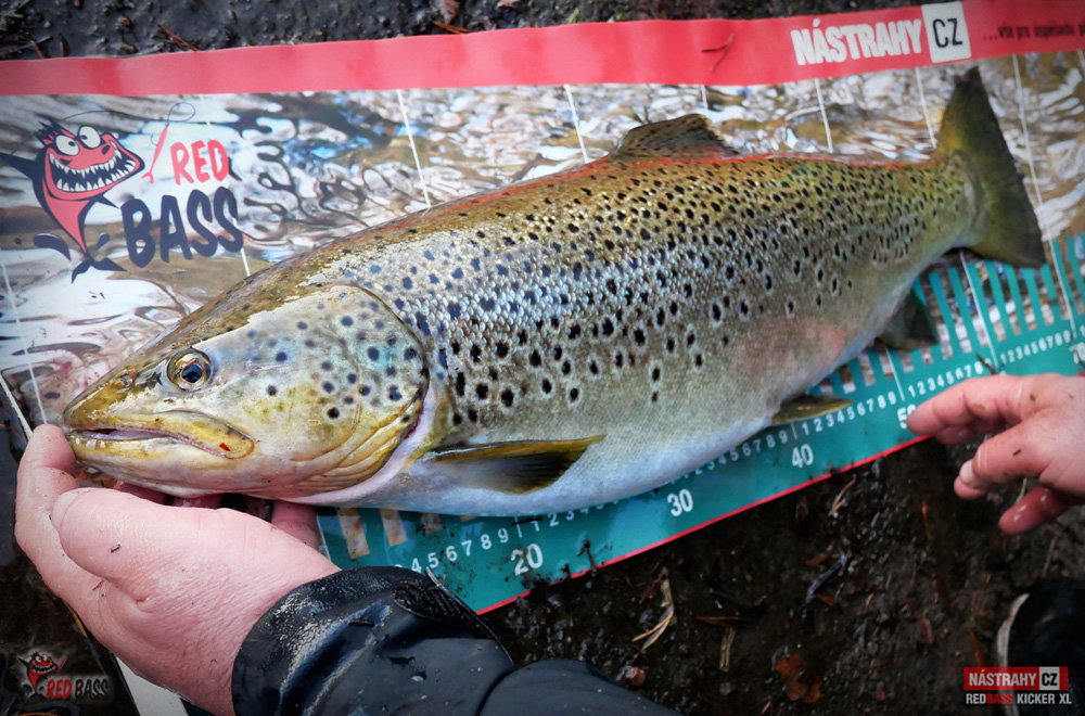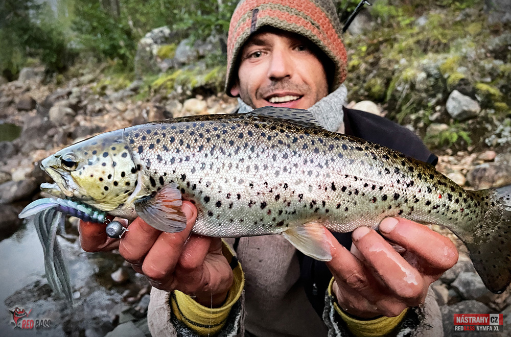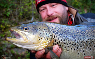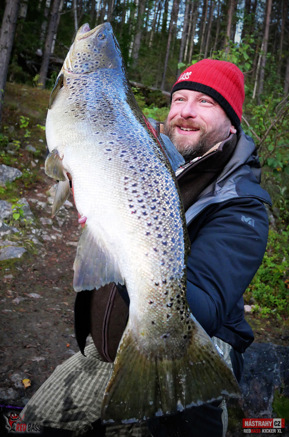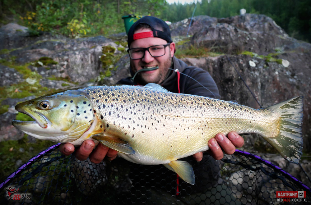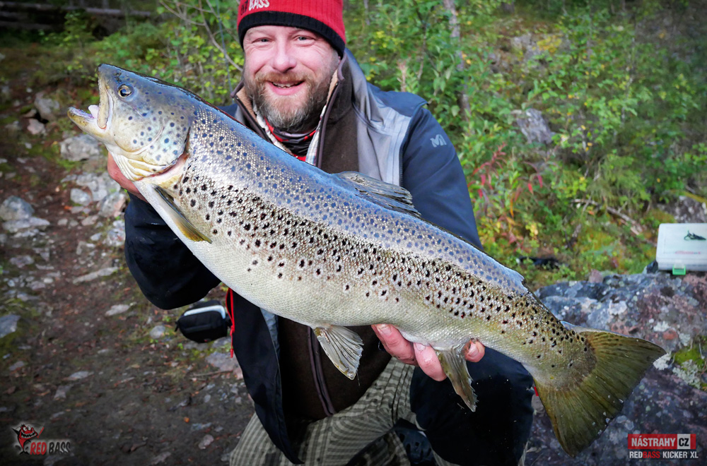 Den pátý. Noc doslova protrpím. Dlouho nemohu usnout a když se to podaří, stejně mě budí nedávno prohrané souboje. Neustálé přemítání, zda něco nešlo udělat jinak. A také jistá frustrace z neúspěchu. Co si budeme povídat, chtěl bych zase dostat pěknou rybu a na rovinu - potřebuji si také dokázat, že to umím. Oba způsoby lovu velkých pstruhů v těchto končinách jsem významnou měrou objevil a rozvinul a zatím jsem chytl kulové. Co naplat, že jsem měl rybu na prutu. To může říct každý. Tady prostě platí okřídlené klišé: ukázaná platí. Takže se opět dobře nevyspím. Konec konců tří až čtyřhodinový příděl nočního spánku moc není. Proto první budík zamáčknu. Druhý mě trochu probere a třetí vytáhne ze spacáku. Vylézám. Řeka je opět zahalena oponou z mlhy a mlčí. Ani náznak nějaké aktivity. Stále vyhlížím vzácný moment, který jsem tu zažil před lety. Desítky velkých pstruhů lovily, kam jsem dohlédl. Jenže tenkrát jsme na to jen čuměli s otevřenou hubou a myšlenka lovit je na gumu bez zátěže z hladiny se ještě ani nezrodila. Dnes už vím, jak v takovou chvíli na ně, ale zase nemám příležitost. Postavím vodu na kávu, ubalím si cígo a tiše budím kluky. Reaguje pouze Radim. Jdu tedy na to. Parťák bude. Drtím u dna včerejší montáž, která byla sice úspěšná, ale smolná zároveň. Bez odezvy. Asi po deseti hodech měním prut. Nového Kickera XL bez zátěže nahazuji do proudu a nechávám pracovat. Pomalu spouštím proudem a usrkávám kávu. Na hladině sice aktivita není, ale co kdyby... Nic. Nástrahu stahuji a nahazuji k protějšímu břehu s cílem jí naplavit na rozhraní tišiny a proudu asi 70 metrů po proudu u druhé strany. Hod se povedl a nástraha směřuje do nadějného místa. Jakmile ho dosáhne, zaklapnu naviják a opatrně srovnávám šňůru. Když je srovnaná, zahájím pomalé couvání s křižováním proudu kombinované se zastavením. Na vysvětlenou - snažím se, aby nástraha imitovala slabou rybku, která nezvládá proud a pomalu couvá a přitom křižuje řeku. A občas dokáže v proudu zastavit. To mají pstruzi rádi. PRÁSK! Do prutu dostávám mohutnou mordu a na hladině se udělá mocný závar. JE TAM! A po pár vteřinách tuším, že je to ON. Těžká ryba se jen válí v proudu a zvolna klesá ke dnu. "Radimééééééé, makééééj, je táááám", volám na parťáka, který se teprve zvolna souká ze stanu. Pstruh, tedy doufám, zvolna jede hlubinou směrem ke mě. Přesto urguju Radima, aby mi pomohl s podebráním. Najednou však, jak když v rybě sepne turbo, se otočí a prchá po proudu. "Neeeeee, to neeee. Svatý Petře, nechci to zažít znovu!", běží mi hlavou prosba k našemu patronovi. Pstruh jakoby mě slyšel a mění po asi dvacetimetrovém úniku strategii. Otáčí se proti proudu a já opatrně získávám metry. Jsem opatrný a něžný jak na první holku. Jak kdybych procházel v pohorkách porcelánem. Nechci nic pokazit. Přichází další pokus o únik po proudu. Ten ale odrazím a ryba se pomalu blíží. To už Radim pevně svírá velký podběrák. Když se ryba vyvalí na hladině, suše polknu, snažím se uklidnit třes v kolenou a modlím se, aby se něco nepokazilo. Šplouch. Nepokazilo. Je tam! A já se mohu se kochat pohledem na velkou silnou rybou v podběráku. A především nádhernou. Je nejen dlouhý, ale nesmírně vysoký a vyžraný. "Ondroooooooo, mám obrovskýho pstruháááááááá!", křičím na Ondru, protože ho jednak musí vidět a také vyfotit. Překvapivě ze stanu vylézá rychle. Zaregistroval souboj a už tušil, co se děje. Rybu měříme. 70 cm. Neskutečný. V tom autě jsem to předpověděl skoro přesně. Tedy u Ondry o cenťák, u sebe přesně. Hustý! Rybu dokumentujeme a odhadujeme váhu na cca 4,5 kg. Neuvěřitelná fiš! Osobák jak prase!
