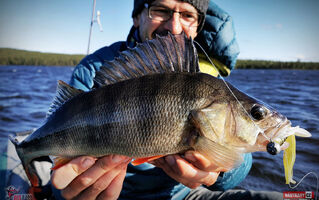 Den osmý. Vstávám tradičně první. Bohužel už je ale světlo. To je "nevýhoda" těchto končin, že této polovině roku je tu den prostě delší. Tahám menší okouny. Postupně se ke mě přidávají kluci. Okounujeme. Bere spousta menších ryb a tak se postupně dáváme na průzkum jezera. Má podle slov bagristy skrývat velké okouny. Musíme je jen najít. Jako obvykle jedu napřed a snažím se nalézt něco zajímavého. Naláká mne pohled na zátoku. Vítr totiž sílí a zdá se, že tam tolik nefučí. Je plná menších okounů. Zkouším obházet "nymfopopem" traviny. Štika se ale nekoná. Zato okouni okolo 30 cm ji atakují a jednoho vyndám. Blázen. Opět si troufl na sestavu přes 25 cm dlouhou :-))) Zkusím malého popa, ale ten je nezajímá. Vyjíždím ze zátoky a obhazuji rákosí. Sice je tu už hodně ostrý vichr, ale štikám to nevadí. Několik ryb do 70 cm se mi daří. Chtěl bych ale ty okouny. Proto vyrážím dál na jezero. Zkouším je najít, ale po hodině se vzdávám. Vítr fučí jako blázen a nedá se skoro ani chytat. O zakotvení skoro nemůže být ani řeč. Ondra s Radimem jsou kdesi v dáli po větru. "Budou mít luxusní návrat", pomyslím si. Nic nenechávám náhodě a zvolna se vracím do tábora. Ehm, no zvolna... Pádluju jako o život a sotva se sunu vpřed. Trasu, kterou bych standardně ujel za 10 minut jedu více než hodinu. Honza přichází po souši. Prý to nešlo a tak nechal kajak dole na jezeře a šel raději pěšky. Volám klukům, že jsme to vzdali. Oni už se také pomalu vrací, ale nechtělo se jim. Trefili se totiž do velkých okounů okolo 45 cm. Vítr byl ale tak silný, že se nebyli schopni ukotvit a také už to začínalo být lehce nebezpečné. Focení prý byl hooodně adrenalinový zážitek :-) Diskutujeme co dál. Jsme hrubě za polovinou výpravy. Jezero se nám moc líbí, šance jsou vysoké, ale předpověď větru špatná. Spíše má sílit. Po krátké poradě volíme přejezd na daleký sever. Do hor. Tam, kde jsme předloni několik dní ve větru mokli. Ovšem do krajiny, která je úplně jiná, tvrdá a současně krásná. A štědrá. Tam, kde mi unikl předloni mega pstruh. Jezeru slibujeme odvetu a odjíždíme. Když po několika hodinách dosáhneme cíle, zjišťujeme, že s větrem jsme si moc nepomohli. Spíše naopak. Nicméně budeme chytat ze břehu a to se dá. Jen aby nepršelo. Stavba tábora je "hustá". Jsme v dolině mezi stromy, takže v závětří. Další závětří si děláme z auta a káry. Přesto máme problém ukotvit stany. Ze široka daleka nosíme kameny a zatěžujeme. Používáme i kotvy od kajaků a vše, co má nějakou váhu. Je to mazec. Při soumraku jdeme na chvíli k vodě. V poryvech větru se ale nechytá dobře. Přesto se podaří pár menších pstruhů, nějací lipani a Ondra dostává půlmetrového krasavce. Vichr je nepříjemný a tak se vracíme do tábora. Znovu zatěžujeme, protože stany působí jak vlajka ve větru. Ondrův stan dokonce jeden z poryvů neustojí a praská mu vnitřní tyčka. Naštěstí má Ondra náhradní a stan opraví. Najíme se a uleháme. A doufáme, že se vítr zklidní a hlavně nezesílí. Kdyby nám stany poškodil a začalo k tomu pršet, byla by to asi krušná noc. Jo, to je ten překrásný, ale současně nekompromisně tvrdý sever. A i proto tu jsme. Když to miluješ...