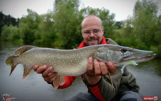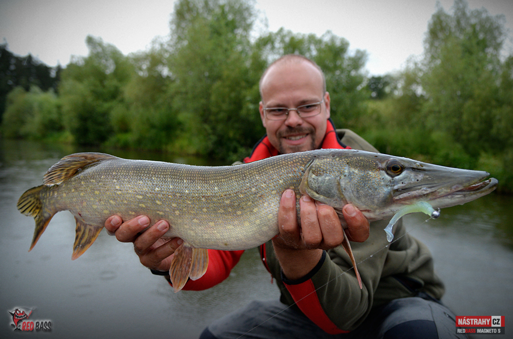 Jsme letos děti štěstěny ;) dneska teda brácha. Sice jsme trochu zmokli, ale stálo to za to. Nástrahu určenou okounům zobla krásná štika!!! Necelých 80 cm.
