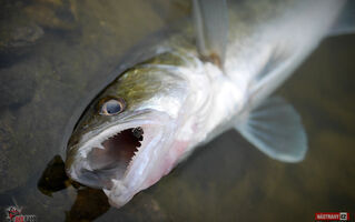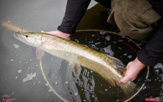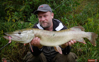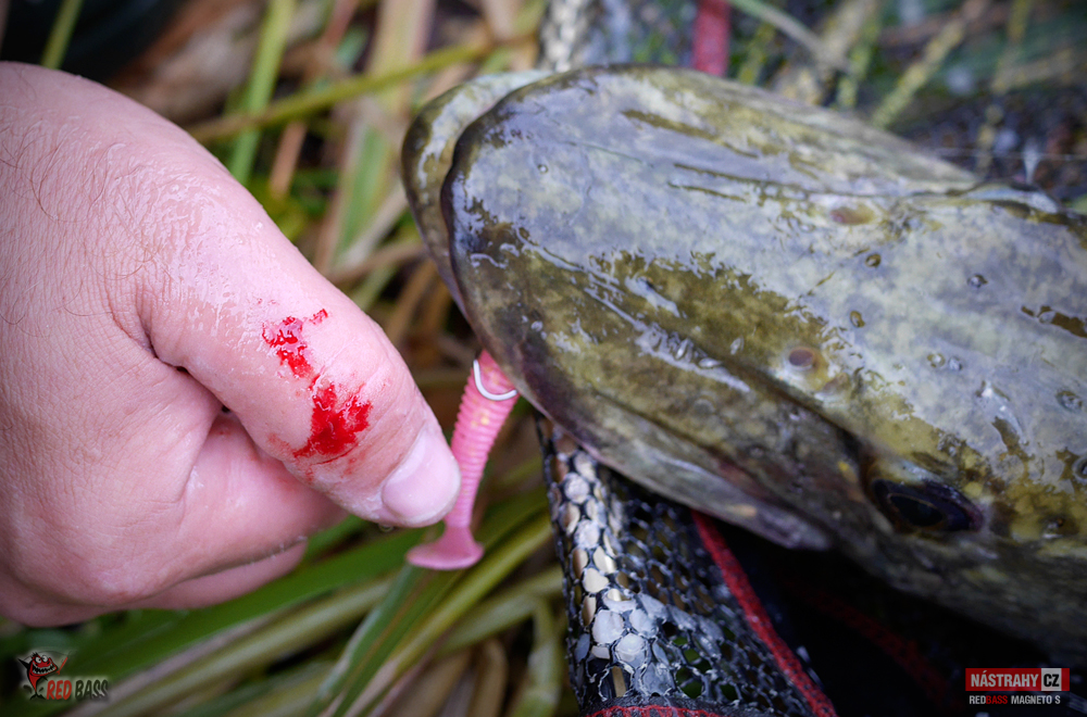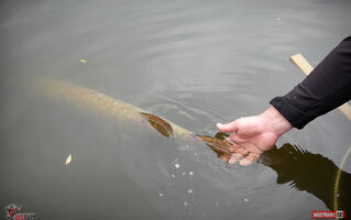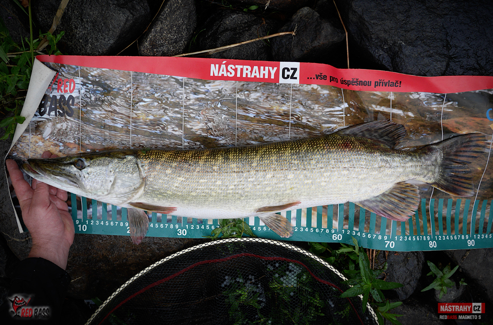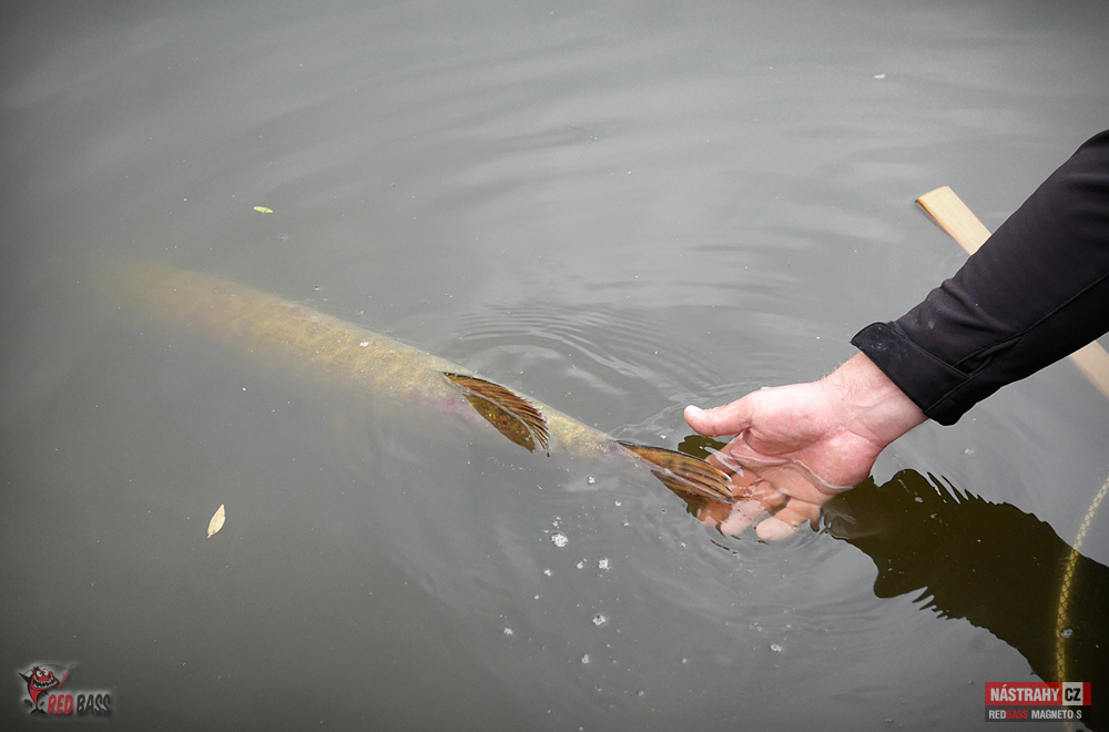 Tak jsem zas jednou šel na céčka a óčka. Céčka hltala poctivě, magneto vždy zmizelo hluboko v hubě. Okouni netahali vůbec. Zkusil jsem štiku, ale nic. Tak jsem prohodil zpátky pruty na jemno, dal růžováka a přišel nečekaný host s jemnou ochutnávkou. Pěkně za zobák, aby to nemohla kousnout (mě ale kousla pěkně, mrcha :). Holt doba potěru a malý věci fungujou. Cca 90 cm. Jsem letos klikař :))) Svatý Petře, díky!!!