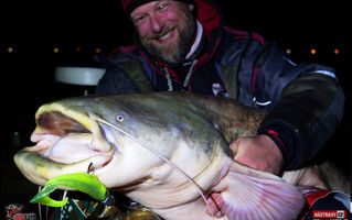 Na sumce jsme nejeli, ale tradičně se to "dělo". Hned první (nebo druhý večer), kdy jsme se dostali na vodu, mi na vertikál zobnul Kixtera XX jeden slušnej. I když to nebyla cílová ryba, měl jsem z něj radost a na vláčkařském cajku ho po cca 20 minutách vyndal. Měřen letmo, něco přes 170 cm+. Za cca dva dny mi přes den vzal Kixtera další. Ten byl ale sakra větší, odhadem kategorie 220 cm+. Přetahovali jsme se přesně 80 minut. Celkem jsem ho zvládal, nicméně po hodině mi zřejmě zajel do nějakých větví a tam "kempoval". Vždy jsem ho maximálně o půl metru přizvedl a pak zase klesl. Když z nich po cca půl hodině vyjel, začal lítat jak zběsilej (pěkně si odpočinul) a návazec povolil. Nejspíše ho o ty větve nabrousil. Souboj celý natočený, proběhlo klasicky vše - pití, čůrání i cíčko :-))) Docela mě to mrzelo i přes to, že sumců jsem si v životě užil dost a předloni dostal tu stokilovou obludu.