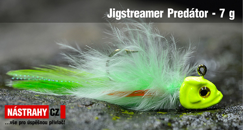 Jigstreamery řady Predátor jsou naprosto dokonalou imitací rybky. Základem této nástrahy je barvená hlavička litá s negativními úhly pro lepší přechod mezi hlavou a peřím. Hlava je doplněna dvojicí 3D očí a je nalita na kvalitním háčku značky Mustad. Na tělo je použit kohout a Marabou, to vše doplněno vhodnými spouštěči ve výrazných barvách.