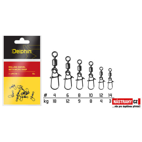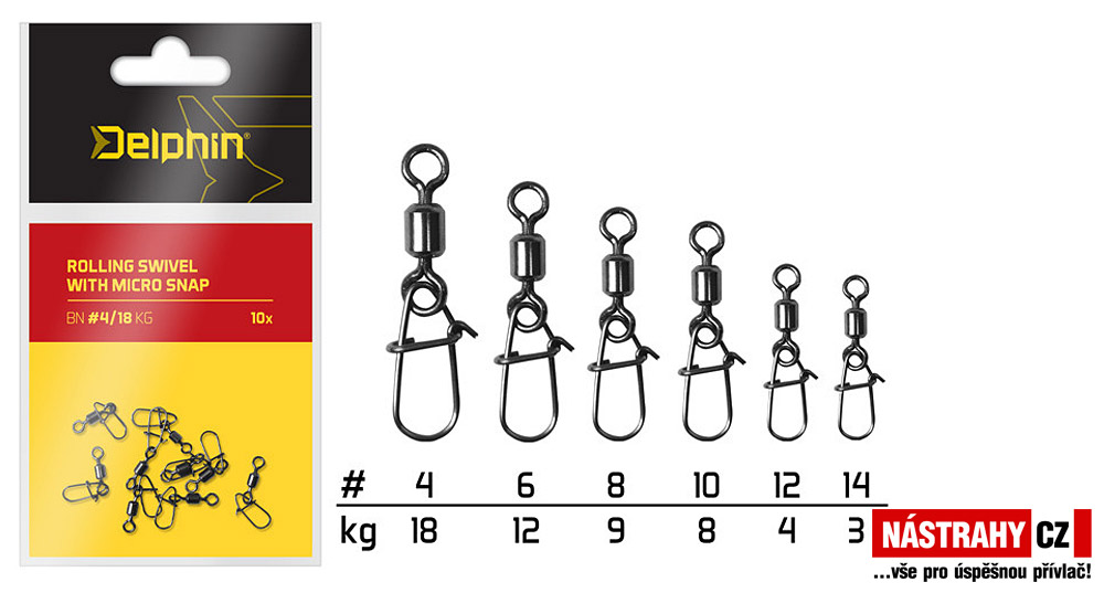 Karabinky s obratlíkem Delphin ROLLING SWIVEL WITH MICRO SNAP použijete v situacích, kdy potřebujete rychlou výměnu rotující nástrahy. Díky použitému obratlíku tak nástraha nezamotá vlasec a karabinka MICRO SNAP se velmi dobře otevírá. Díky šesti velikostem a nosnosti je využijete při širokém spektru nejen přívlačových technik. V balení se nachází 10 kusů.