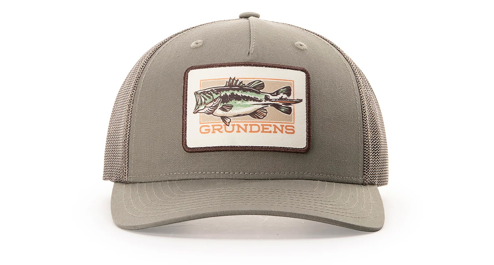 Klasická truckerka se středně vysokou korunou a nastavitelným zapínáním na patentky. Nabízí výrazný design „Off to the Races“ s motivem okouna od značky Grundéns na originální kšiltovce značky Richardson.