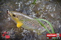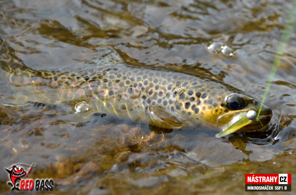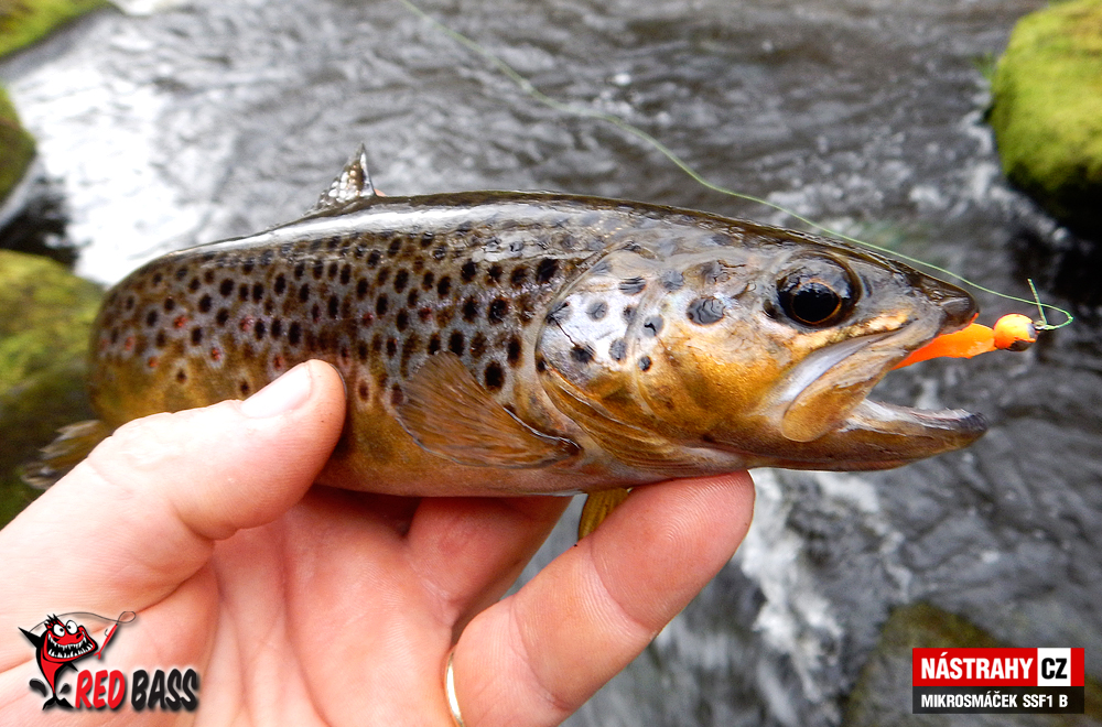 Nastražení: jigová hlavička 0,5 - 2,0 g , wolfram + streamerový háček, streamerový háček + brok. TOP s čeburaškami REDBASS.