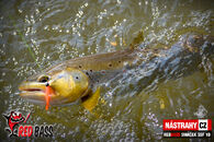 Nastražení: Jigová hlavička 1,0 - 5,0 g, TOP s čeburaškami REDBASS, wolfram + streamerový háček, streamerový háček + brok max. 2 g.
