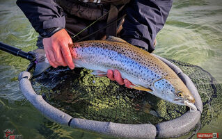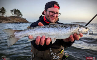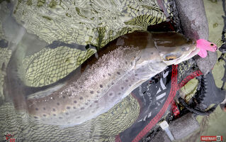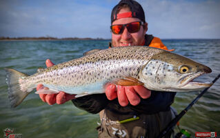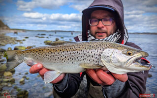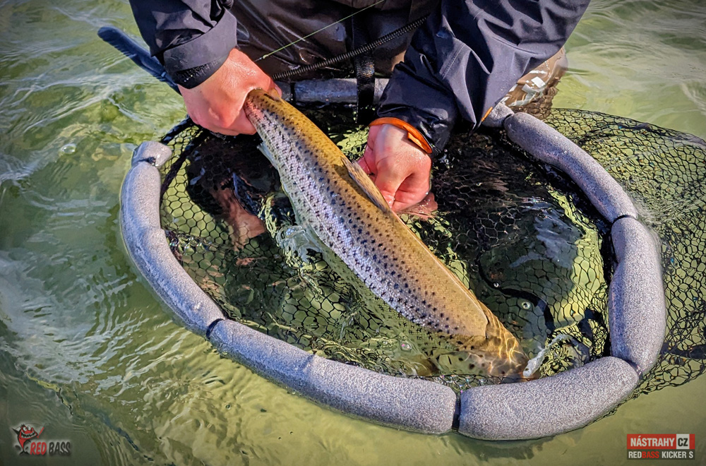 Letošní výprava za mořskými pstruhy byla úspěšná! Ryb jsme sice neulovili tolik, jako vloni či předloni, ale velikost se opět zlepšila. Zřejmě nás chtěl Svatý Petr po utrpení v ostrých větrech a deštích motivovat k výpravě další a seslal nám jednu šedesátku (konkrétně 59 cm Ondrovi), několik půlmetrových a pak ryby menší. Záběrů bylo letos opravdu hodně, ryby ale nedobíraly. Troufnu si říci, že kdybychom proměnili každý záběr, ryb by bylo jistě ke stovce. Díky jemnému braní to však byl jen zlomek. Sám jsem si také takřka sáhl na rybu 50+, bohužel mi u podběráku spadl. Topkou byl už tradičně Kicker S a nymfa L.