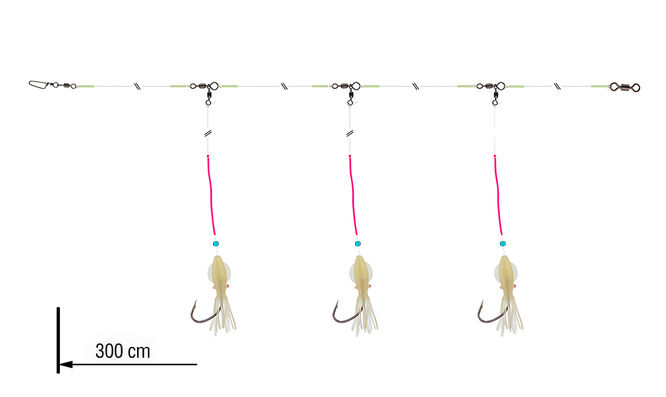 Tento návazec je navržený pro lov štikozubců a tresek. Velké háčky se hodí pro použití v kombinaci s přírodní nástrahou a zabraňují ztrátě vašeho úlovku. Speciální rotační obratlíky na obou stranách a ochrana uzlu spolu s hadičkou u chobotničky zabraňují zamotávání návazce při klesání do velké hloubky. Perfektní volba pro lov ve středním a severním Norsku!
