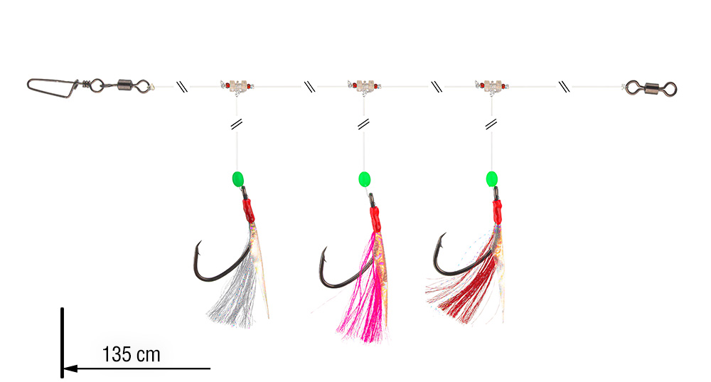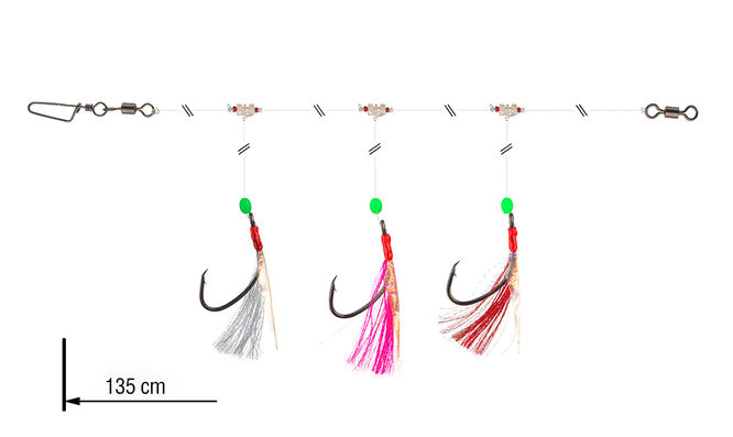 Extra silný paternoster vyrobený z materiálu reálné rybí kůže, určený pro lov tresek v severním Norsku. Rotační kulička zabraňuje zamotání při zdolávání ryby - návazec můžete opakovaně používat. Rotační kulička je vyrobená ze speciálního ABS plastového materiálu a odolá i velmi silnému tahu. Souboj a zdolávání velkých, bojovných tresek bude s tímto návazcem opravdu hračka.