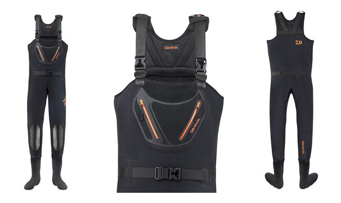 Vysoce kvalitní lehké broďáky vyrobené ze 4mm CR neoprenu ve skvělém designu. Jedinečné vlastnosti CR neoprenu přinášejí ve srovnání s běžným neoprenovým materiálem větší flexibilitu a měkkost. Zlepšuje se komfort nošení a je dosaženo vynikající lehkosti. Střihová konstrukce neoprenové ponožky zajišťuje dlouhotrvající pohodlí i při dlouhých vzdálenostech chůze v nerovném terénu. Velká náprsní kapsa je vybavena vodoodpudivými zipy a poskytuje suchý úložný prostor pro drobné příslušenství. Zadní strana s vysokým loftem zvyšuje komfort a umožňuje bezproblémový dlouhotrvající rybolov. Oblast kolen byla zesílena speciálními kolenními chrániči, které tyto oblasti dělají ještě odolnější. Nastavitelný pásek zlepšuje pasování a snižuje riziko nečekaného vniknutí vody. Všechny vnitřní švy jsou podlepené pro maximální bezpečnost.