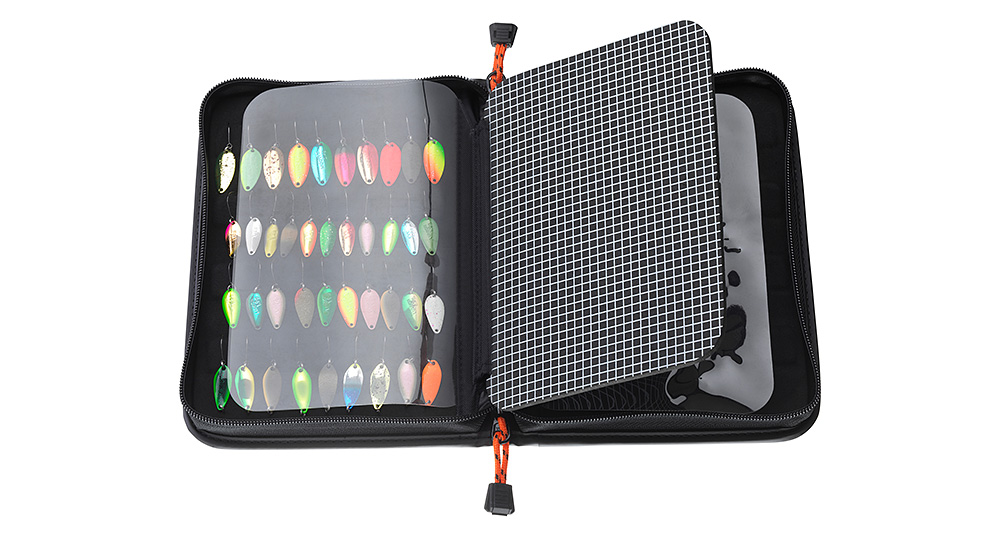 Velmi kvalitní pouzdra pro uložení plandavek na lov pstruhů. Třpytky lze upevnit vodorovně nebo svisle. Vnitřní dělící vrstva zabraňuje kontaktu háčků a tím poškození povrchu nástrah. Vnitřní část zipu je speciálně potažena, aby se zabránilo zachytávání háčků. K dispozici ve dvou velikostech.
