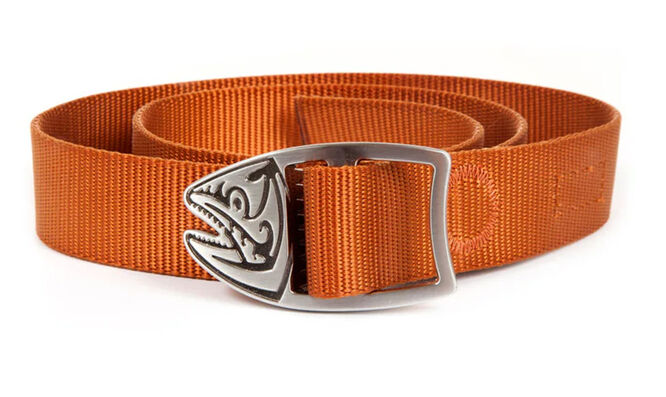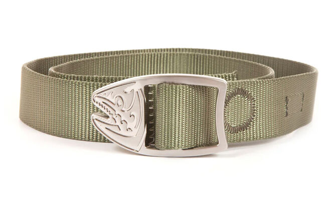 Nylonový opasek se zinkovou přezkou, který lze zkrátit na požadovanou délku a zakončit s pomocí plamene, aby nedošlo k třepení.