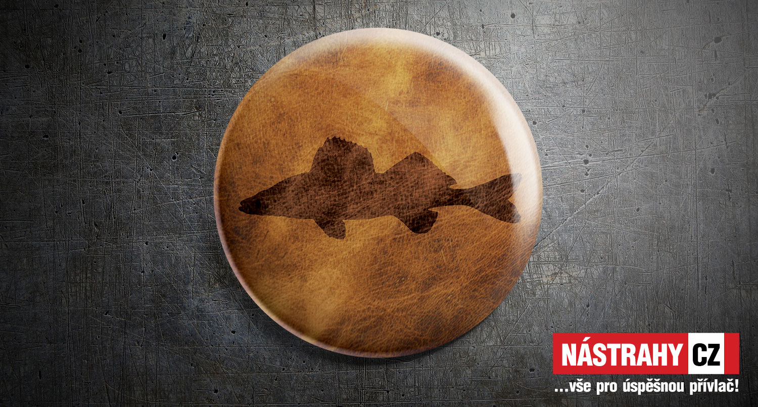 Placka (odznak) pro milovníky rybaření s motivem siluety candáta.