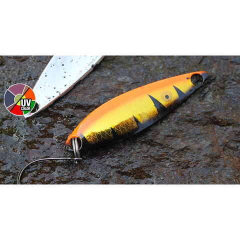 Plandavka Trout Bait Hulk s UV barvou je skvělá do proudů pro pstruhy, siveny, tlouště, lipany, okouny a mnoho dalších ryb. Tento model funguje skvěle na stojatých vodách nebo na řekách s mírným proudem a při pomalém lovu u hladiny. Při propadu vydává lákavé vibrace. Je vybavena jednoháčkem s mikroprotihrotem Kumho.