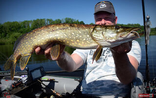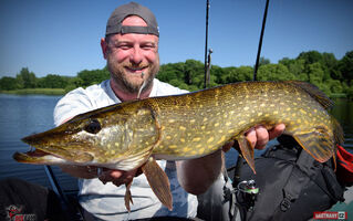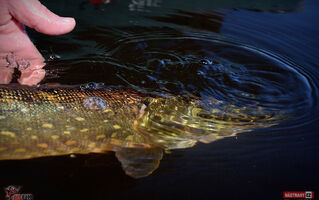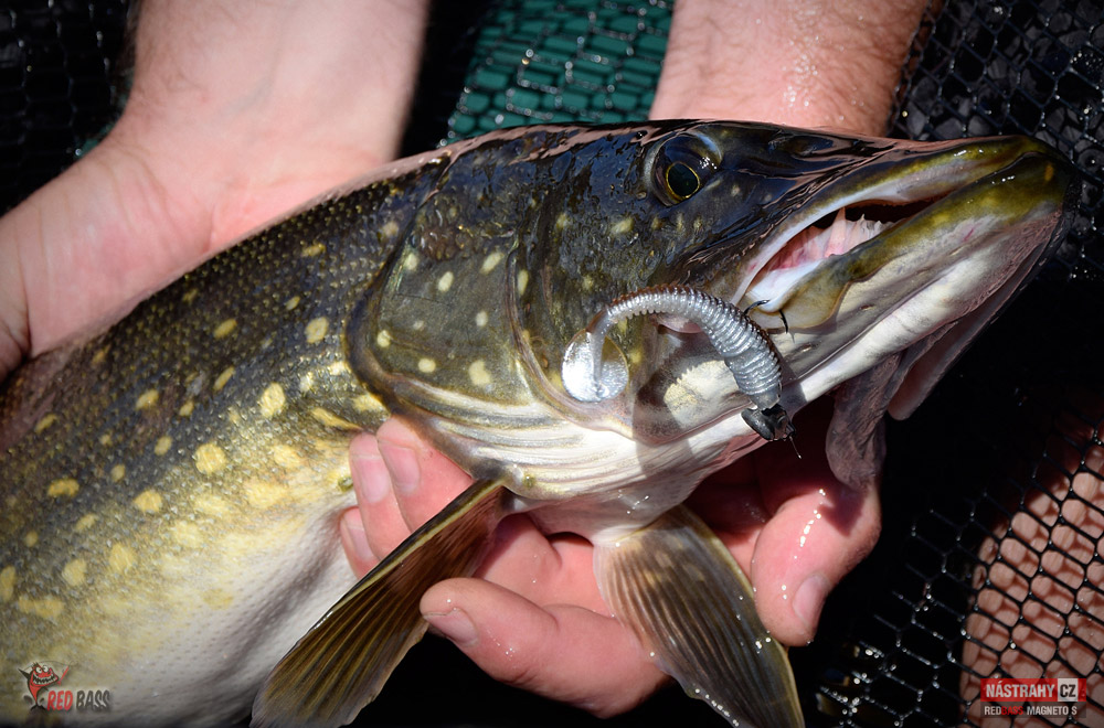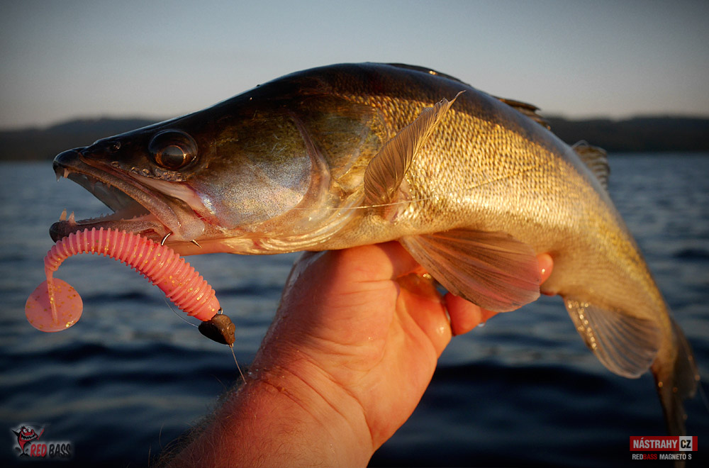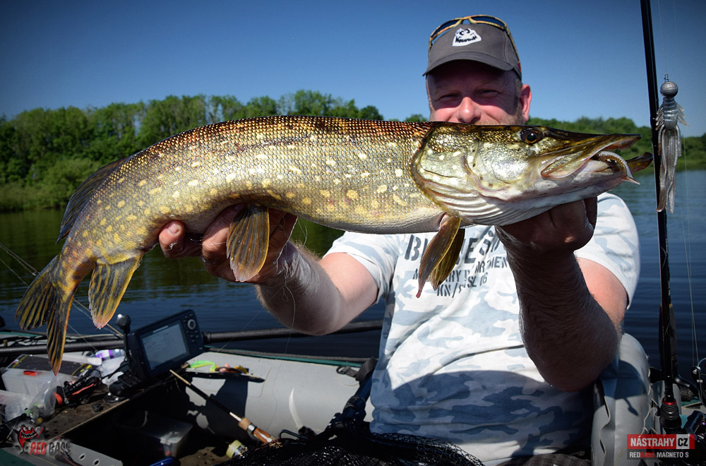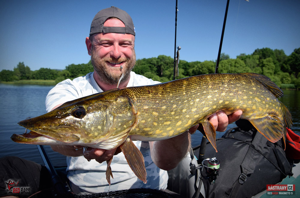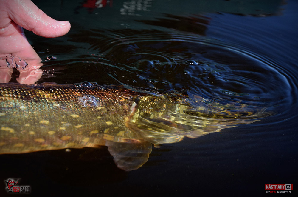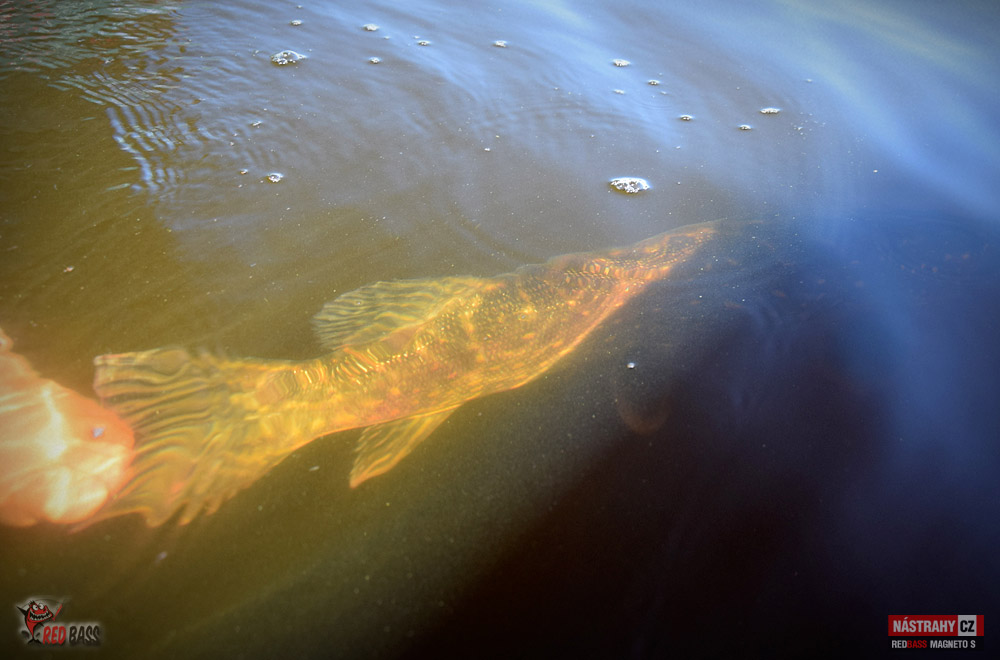 Byl to hodně těžký návrat. Ryby jsou díky plnému stavu na jiných místech, než jsem zvyklý, počasí přímo pekelně horké. I přes tyto nepříznivé podmínky to byl nádherný den a i se nějaké ryba povedla. Candáti kousali jen "školáci", kterým začali prázdniny. Podařil se jen jeden čerstvý dospělák lehce přes půl metru. Po štikách jsem vůbec nešel, přesto se na mě přijely dvě podívat - jedna odhadem něco přes 75 a druhá cca 80 cm. Vtipné bylo, že když mi Míra vyfotil tu první, tak jsem hned na asi druhý hod zapřáhl tu další. Chvíli jsem si říkal, zda to není ta samá. Nebyla. Byla to ta větší :-) No a okouny jsem vytáhl dva, první lehounce nad 30, druhý mi zobl nymfu na vertikál a měl okolo 40 cm. Tvrdší candátový prut ho neudržel a setřepal se u podběráku. Nejúspěšnější byla hnědostříbrná barva, především pak Kicker a Magneto S. Milé "moře", jsi nádherné a já se vrátím!