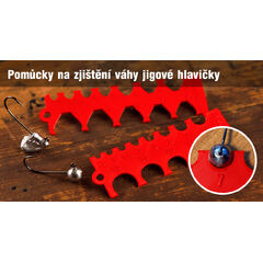 Určení váhy hlavičky probíhá jednoduše - jigovou hlavičku vložíte do otvoru. Rozsah 0,5 - 40 g (kulatá), 1 - 30 g (StandUp).