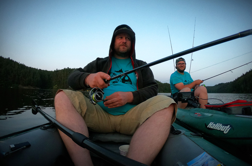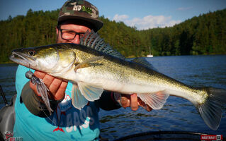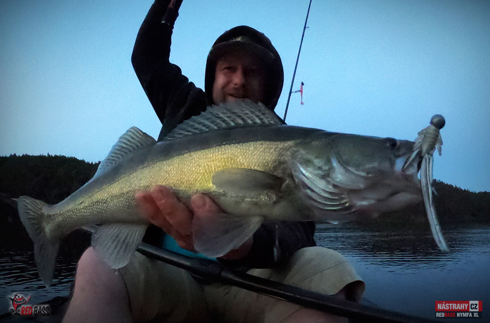 Na ryby se teď dostaneme opravdu jen svátečně, zahájení chvilku, pak řeka v brutál dešti a téměř za povodně, další výprava na Orlík za dětmi (chvilku jsme chytali a žralo to brutálně - asi 20-30 candátích ran za dvě hoďky). Druhý den nám to nedalo a vyrazili jsme znovu. Ryby se mi ale docela úspěšně vyhly. Zato Ondra prožil slušnou jízdu, kdy na 10 cm hnědou nymfu drtil jedno céčko za druhým a já se s klasikou 13 cm nechytal. To je přesně to, o čem vždy mluvíme - někdy to chce zmenšit :-) Zajímavostí je taky Tondův candát cca 85 cm na Kickera (jak jinak)