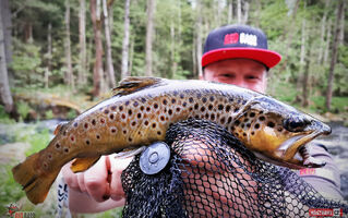 Včera jsme s Ondrou vyrazili na říčku, kde je ryba přes 30 cm zážitkem. Nasadil jsem do akce nymfu L s tím, že už je teplejší voda a mohlo by to zlákat nějakého místního veterána. Celkem jsem přemluvil k záběru 5 velkých ryb a velké množství menších. Pouze jednoho jsem měl tu čest vyfotit a byl na vrcholu blaha. Ondra si s menšími nástrahami taky pěkně zalapal, hodně ryb se blížilo 30 cm. Nádherný podvečer to byl!