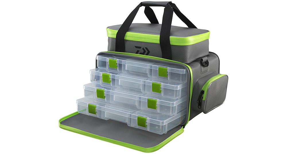 Tyto plně voděodolné a vysoce odolné EVA tašky s tkanou 3K strukturou poskytují dokonalou ochranu proti vodě a lze je snadno čistit. Vodoodpudivé zipy na hlavních oddílech zabraňují pronikání dešťové vody dovnitř. Horní, menší přihrádka (34 x 20 x 7,5cm nebo 25,5 x 16,5 x 7,5cm) je připevněna suchým zipem a v případě potřeby ji lze snadno vyjmout. Horní přihrádky nabízejí prostor pro nástrahy, velké příslušenství apod.