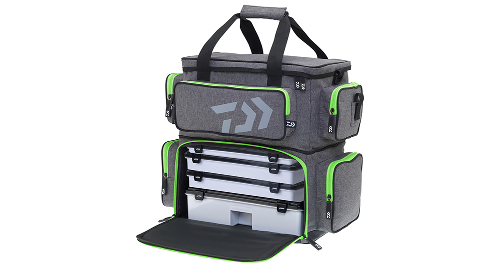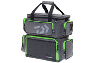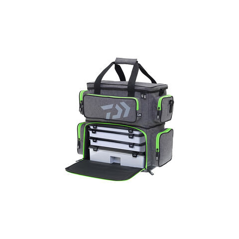Do této moderní tašky můžete uložit téměř všechny své nástrahy a další náčiní, které potřebujete k rybaření. Vodoodpudivý materiál je velmi odolný a lze jej snadno čistit. Pogumované dno zabraňuje vniknutí vody. Spodní přihrádka je vybavena 4 velkými D-boxy DAIWA a nabízí dostatek prostoru pro velké krabičky nebo navijáky, cívky, potraviny, nápoje, oblečení do deště atd. Do přední kapsy můžete uložit dlouhé kleště, dokumenty a další příslušenství. Další 4 boční kapsy nabízejí prostor pro malé krabičky, pouzdra apod. Zip je vyroben z ABS materiálu a je mimořádně odolný a nekoroduje.