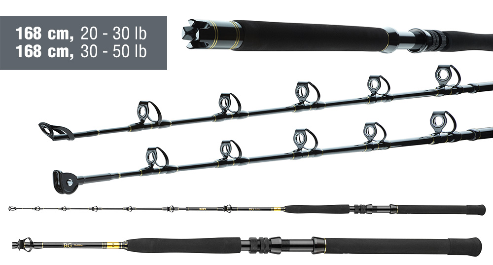 Řada BG obsahuje pruty pro lov tresek a halibutů s přírodními nástrahami, ale zahrnuje také modely pro povrchový lov Mahi Mahi a GT s nástrahami stickbait a popper. Do řady BG patří také pruty na jigging pro lov kranasů nebo na hlubinný lov okouníků. Tato řada samozřejmě nabízí i cestovní pruty s krátkými díly pro nejběžnější způsoby mořského rybolovu, zejména pro lov v Norsku. Robustní blank HMC+ je vybaven očky z oxidu titanu, která jsou odolná vůči slané vodě, sedlem navijáku DPS-H nebo DPS s bezpečnostním závitem a odolnou EVA rukojetí. Tyto vlastnosti dělají z prutů BG spolehlivého společníka při nekompromisních rybářských výpravách do oceánů po celém světě.