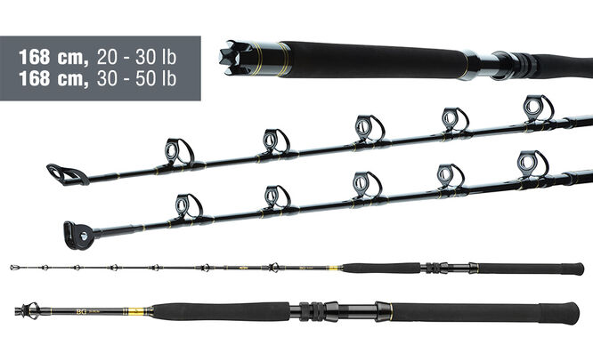 Třídílné blanky 30lbs a 50lbs prutů jsou ideální volbou pro výpravy do Karibiku a dalších tropických oblastí, Středozemního a Jaderského moře. Výkonné, extrémně pružné blanky vyrobené z kompozitního materiálu mají dostatek síly, aby si poradily se silnými bojovníky z teplých vod, speciálně s menšími tuňáky, kranasy, mahi mahi atd. Kompaktní transportní délka pouhých 69cm umožňuje snadnou přepravu a uložení do běžného zavazadla. Nepotřebujete drahý přepravní tubus! Model 30-50lbs je vybaven válečkovým špičkovým očkem. Měkčí 20-30lbs model je osazen normálním špičkovým očkem s keramickým kroužkem. Oba modely disponunjí vysoce kvalitním, extrémně odolným hliníkovým sedlem navijáku a zdolávací gimbal koncovkou. S těmito pruty BG Big Game jste připraveni bojovat s nejsilnějšími mořskými predátory.