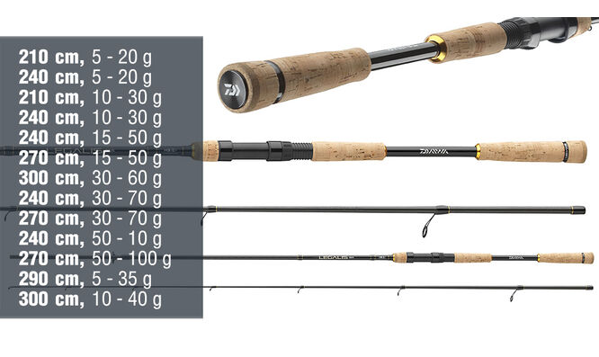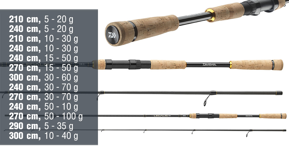 Přívlačové pruty Legalis od společnosti DAIWA kombinují moderní a nadčasový design s kvalitními komponenty a výjimečným výkonem. Velmi štíhlé a rychlé blanky z HMC+ uhlíku jsou dokonale vyvážené a v ruce působí velice lehce. Umožňují dlouhé a přesné náhozy a podporují vynikající cit. Rychlé blanky prokazují svou sílu v páteři při jakémkoli ostrém souboji a umožňují nahodit i lehké nástrahy do velké vzdálenosti. Během souboje nabízejí velké silové rezervy pro spolehlivé zdolání i velkých dravců. Řada prutů Legalis Spin je symbolem spolehlivé kvality, moderních technologií a všestranného využití.