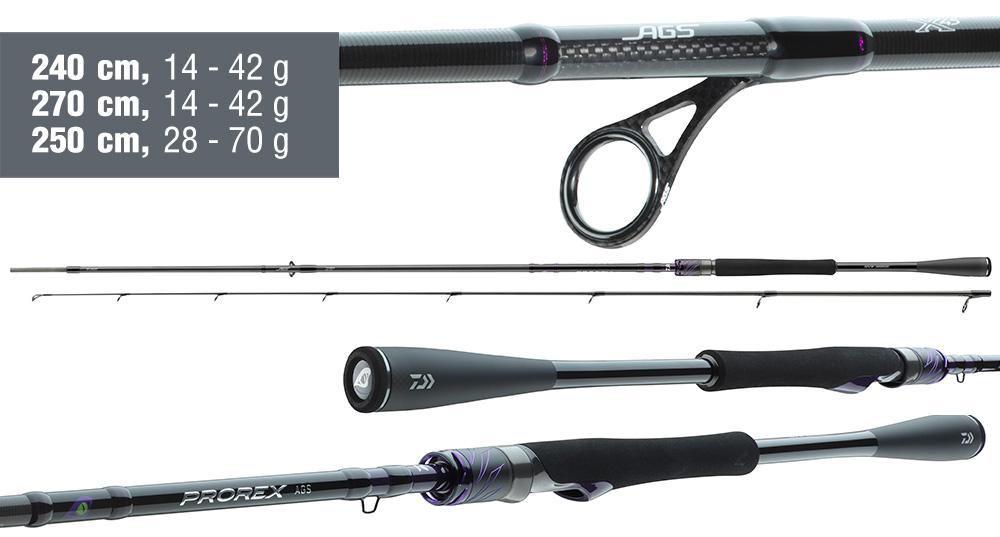 Pruty Prorex AGS jsou vybaveny téměř všemi špičkovými prvky moderních exkluzivních technologií stavby prutů DAIWA z Japonska. Tyto pruty zaujmou zejména velmi nízkou hmotností, perfektním vyvážením a velmi rychlou a citlivou akcí.