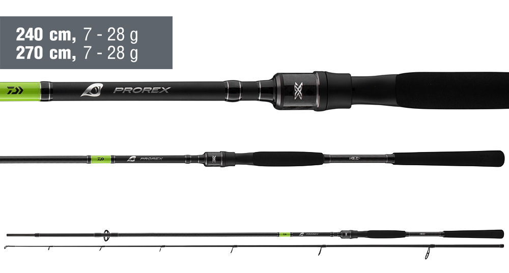 Akce prutů Prorex X byla přizpůsobena speciálním požadavkům různých moderních technik lovu na přívlač s gumovými i tvrdými nástrahami. Prémiový blank z uhlíkových vláken HMC+ zajišťuje nízkou hmotnost, rychlou akci a enormní silové rezervy. Prémiové spoje umožňují konstrukci velmi tenkého blanku a výrazně tak zlepšují vyvážení. X-wrapy z uhlíkových vláken na povrchu blanku dodávají prutu stabilitu a mimořádný vzhled. Velmi lehká očka Seaguide s keramickými vložkami a speciálními rámy zabraňují zamotání při náhozu a významně přispívají k rychlé akci a skvělému vyvážení prutu. Široká řada prutů Prorex X nabízí odpovídající verze vhodné pro téměř všechny druhy moderní přívlače.