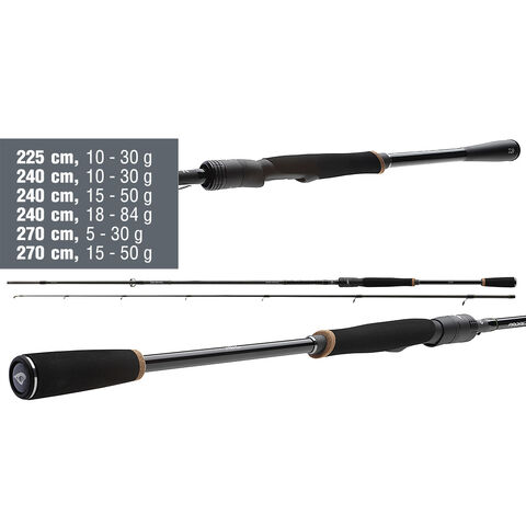 Modely s vrhacími zátěžemi od 10-30g do 18-84g se perfektně hodí při použití gumových nástrah na jigové hlavičce nebo twitchbaitů, woblerů či rotaček. V závislosti na vrhací zátěži najdete v této řadě prutů modely pro širokou škálu použití: V tomto případě se jedná o pruty pro lov okounů, tloušťů a pstruhů s malými gumovými nástrahami nebo woblery pro lov štik a candátů různými technikami. Pruty s vrhací zátěží do 30g a délce do 2.65m jsou vybaveny exkluzivními rukojeťmi z EVA uhlíkových vláken, což poskytuje pohodlnou manipulaci a skvělý kontakt s nástrahou. Pruty s vyšší vrhací zátěží jsou vybaveny EVA rukojetí, která podporuje vyvážení prutu.