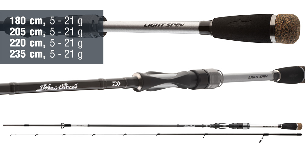 Přívlačové pruty Silver Creek Light doplňují velmi oblíbené UL modely o čtyři pruty s poněkud silnější špičkou z uhlíkových vláken. Špička je v běžných podmínkách rybolovu téměř nezničitelná a stará se – v kombinaci se silnou páteří blanku HMC+ – o velké nahazovací vzdálenosti. Ideální na gumové nástrahy o velikosti 5-10cm.