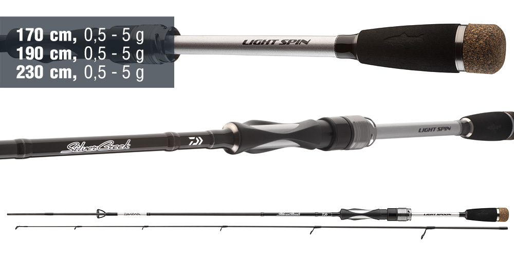 Modely Silver Creek Spoon byly vyvinuty speciálně pro lov lososovitých ryb s ultralehkými třpytkami. Plně parabolický blank dokonale ohýbá i při zátěži 1g a dosahuje pozoruhodných náhozových vzdáleností. Tyto pruty zaručují naprosto velkolepou zábavu během zdolávání! Vybaven tubulární špičkou.