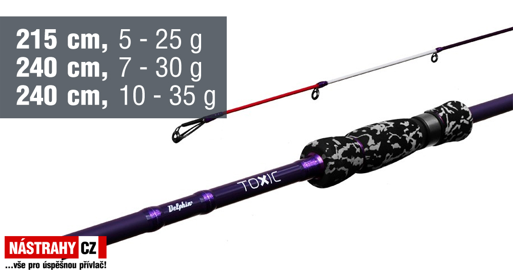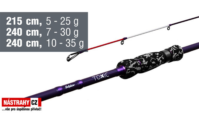 Absolutně nepřehlédnutelný model od značky Delphin! Rychlý, temně fialový blank ze špičkového 30T carbon-u nenechá rybáře o svém předurčení váhat ani vteřinu. Přesné nahazování, bezchybné vodění nástrahy, rychlé zaseknutí, ale i silovější zdolávání. To je TOXIC, prut tak nekompromisní, jak jen může být. Nezaměnitelný blank toxic přechází do agresivní tvarované rukojeti, která padne okamžitě do ruky. Osazené kvalitními očky, která dotvářejí dokonalý koncept tohoto prutu. Buď si TOXIC, nebo nejsi!