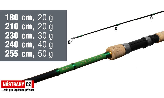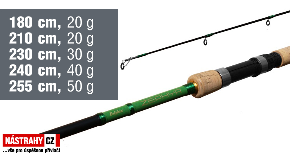 Neuvěřitelná. I tak by se dala charakterizovat série Delphin ZEPHYR. Tato série je totiž navzdory nízké ceně plně postavena na blanku z 24T carbon-u a osazena SiC očky, což je v dané kategorii jedinečné. Tmavě zelený, kvalitně zpracovaný blank je navíc doplněn korkovou rukojetí s lety ověřeným a spolehlivým sedlem typu DPS. Série poskytuje pestrou variaci délek a vrhacích zátěží, což potěší širokou škálu rybářů lovících technikou přívlače. Zlatá grafika a kontrastní vyvázání oček světle zelenou jsou už jen třešničky tohoto modelu. Delphin ZEPHYR- bezkonkurenční série v poměru cena / výkon.